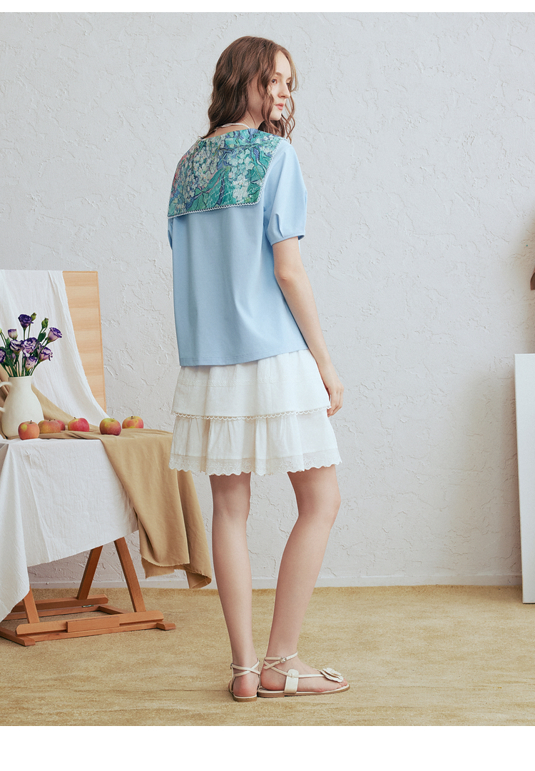 两三事心向莫奈 夏季新款文艺风油画印花口袋长袖衬衫女宽松