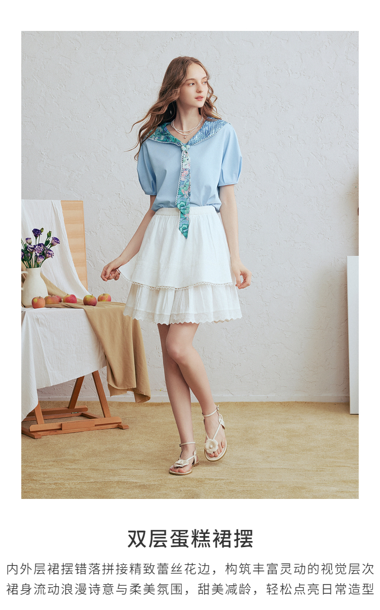 两三事 杏仁奶心 2026春季新款蕾丝花边裙摆蛋糕裙高腰短裙半身裙