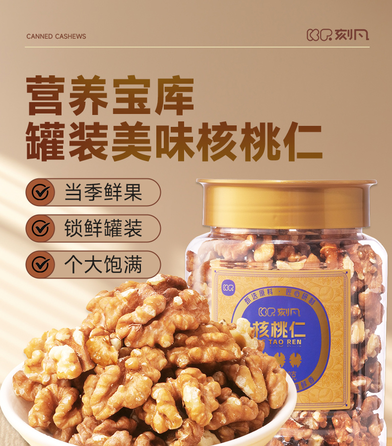 【自营】刻凡 网红休闲食品核桃仁288g*1罐