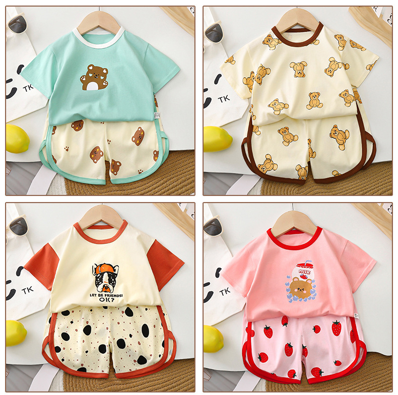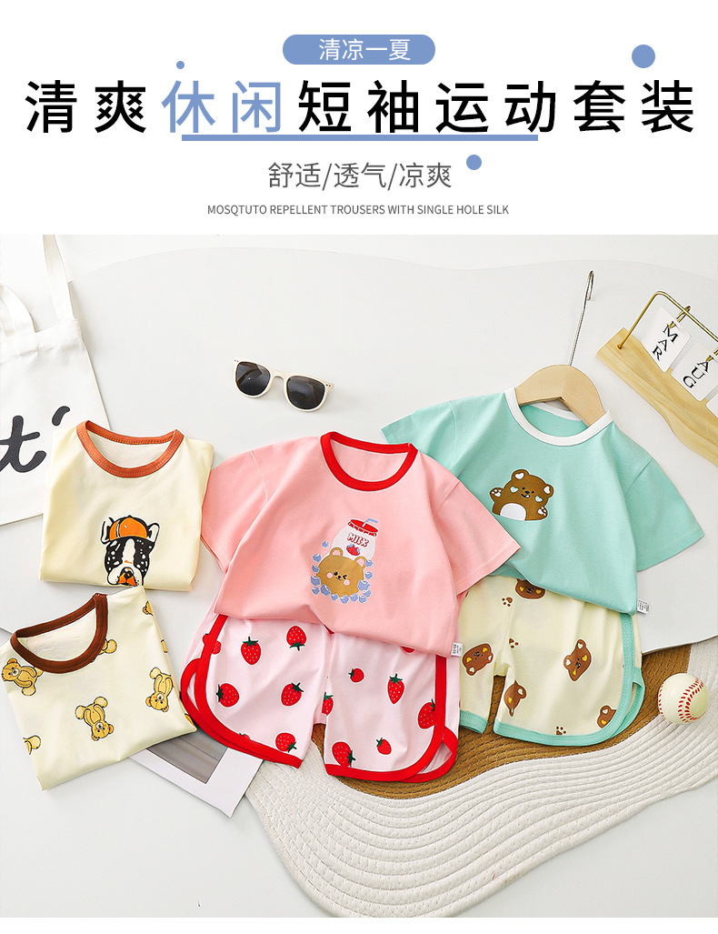 【49.9/2套】儿童短袖套装纯棉夏季新款男童t恤短裤宝宝夏装韩版女童衣服童装聚