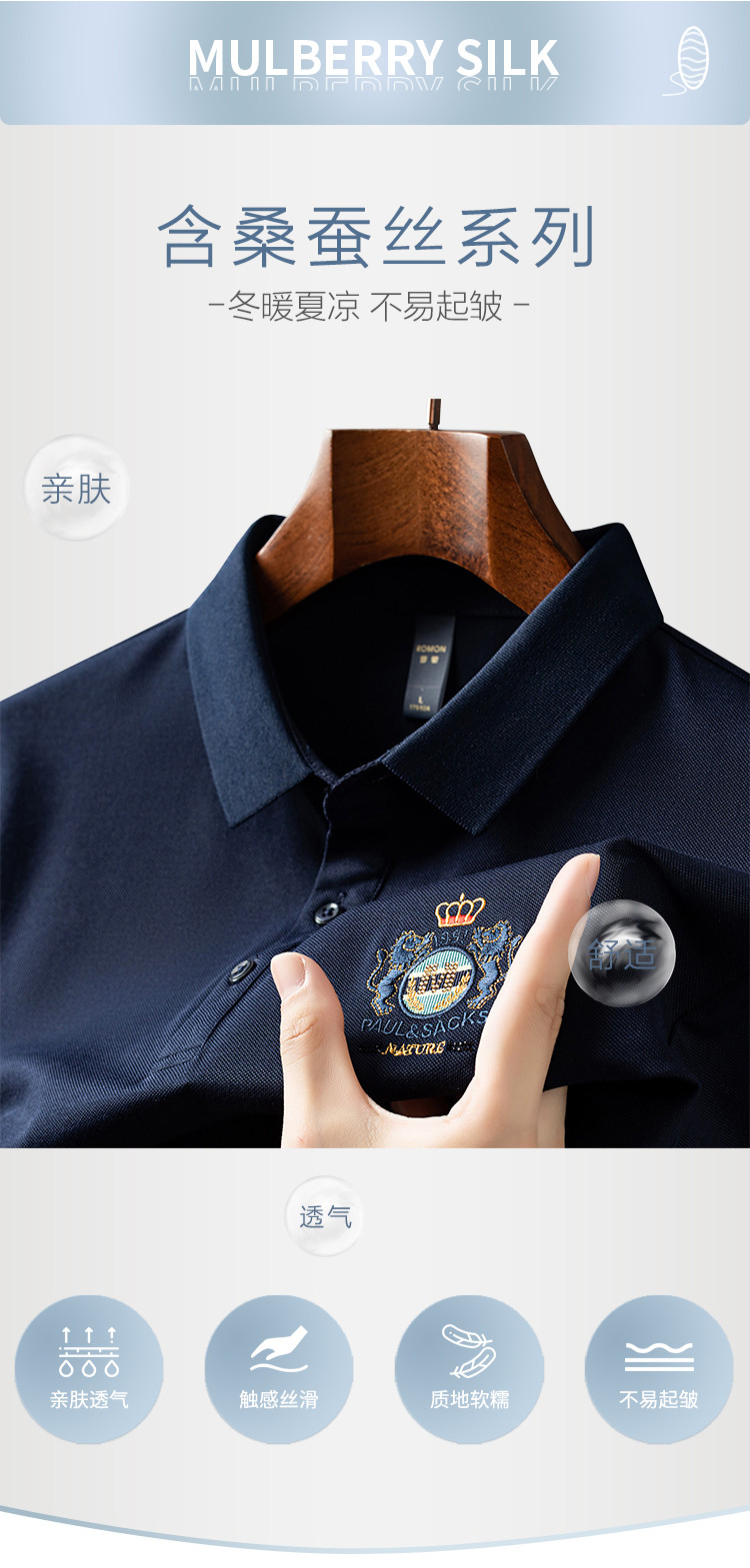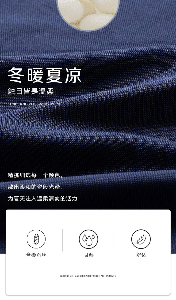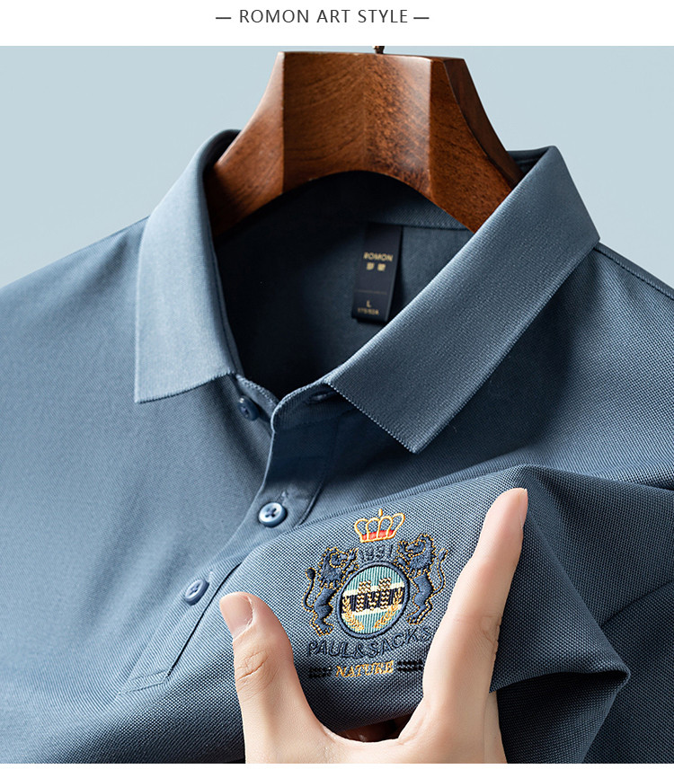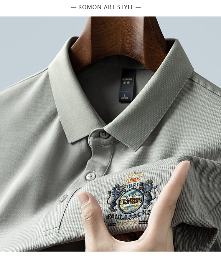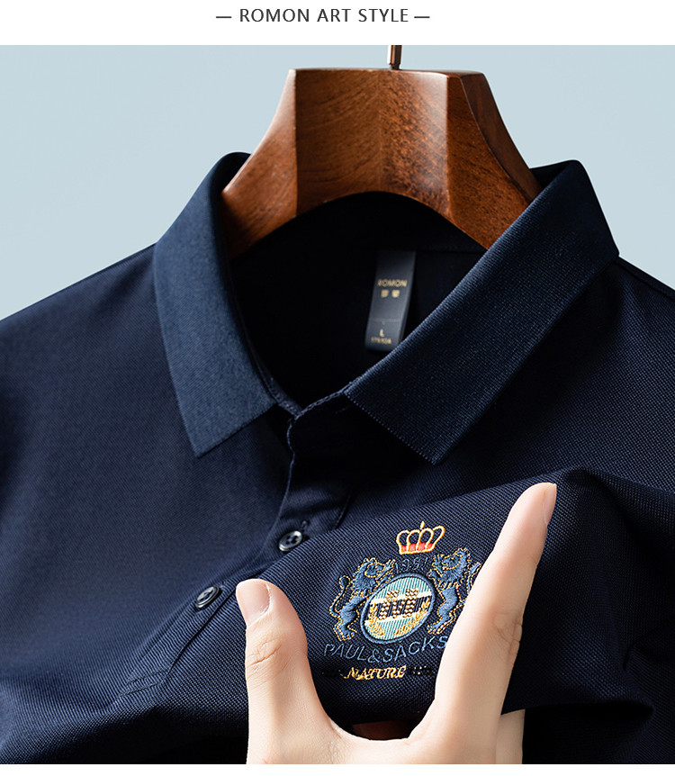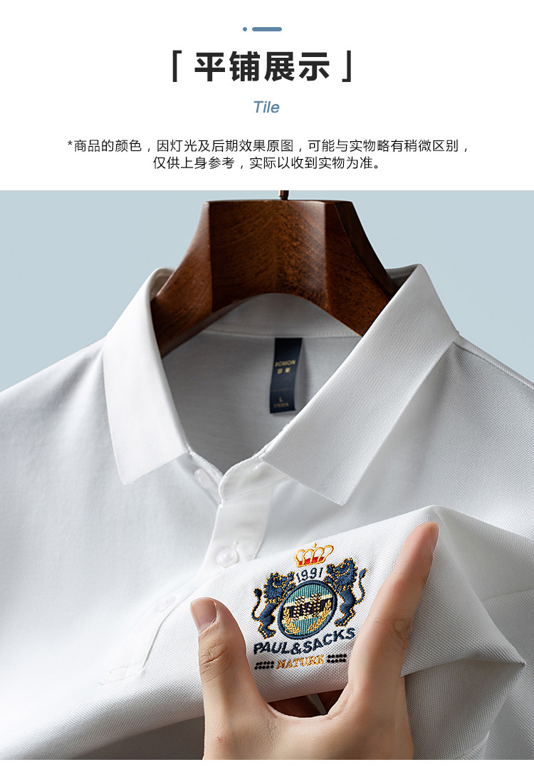 【含桑蚕丝】罗蒙男士夏季商务polo衫男短袖男夏季薄款绣花冰丝t恤男短袖