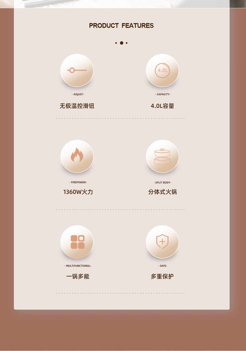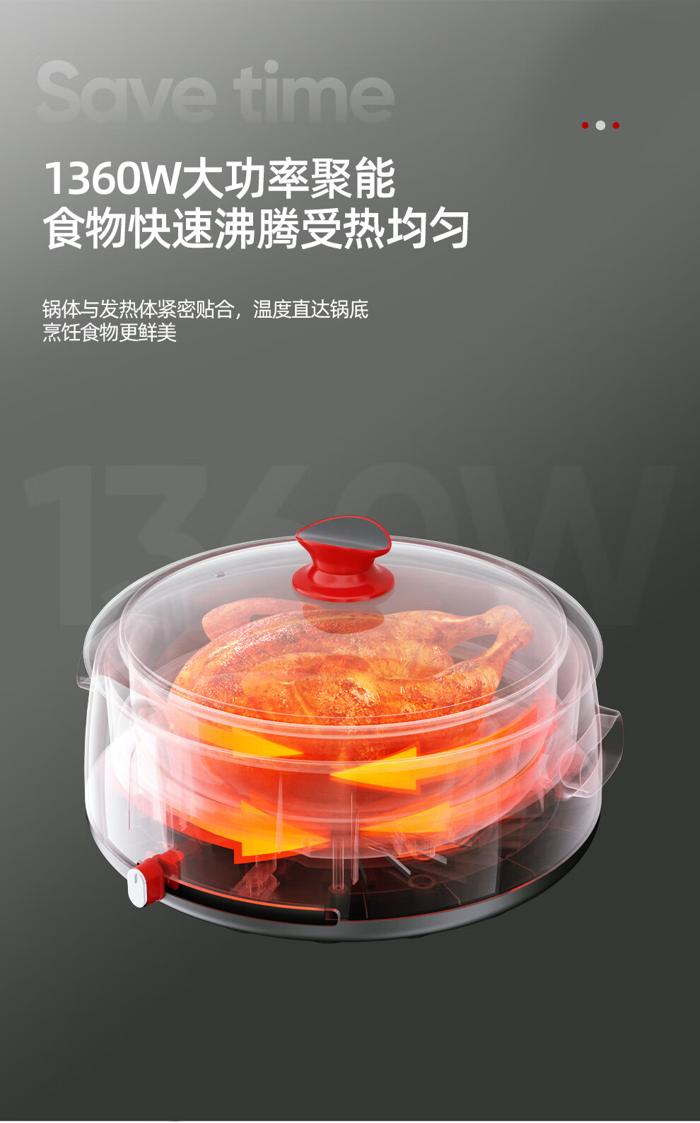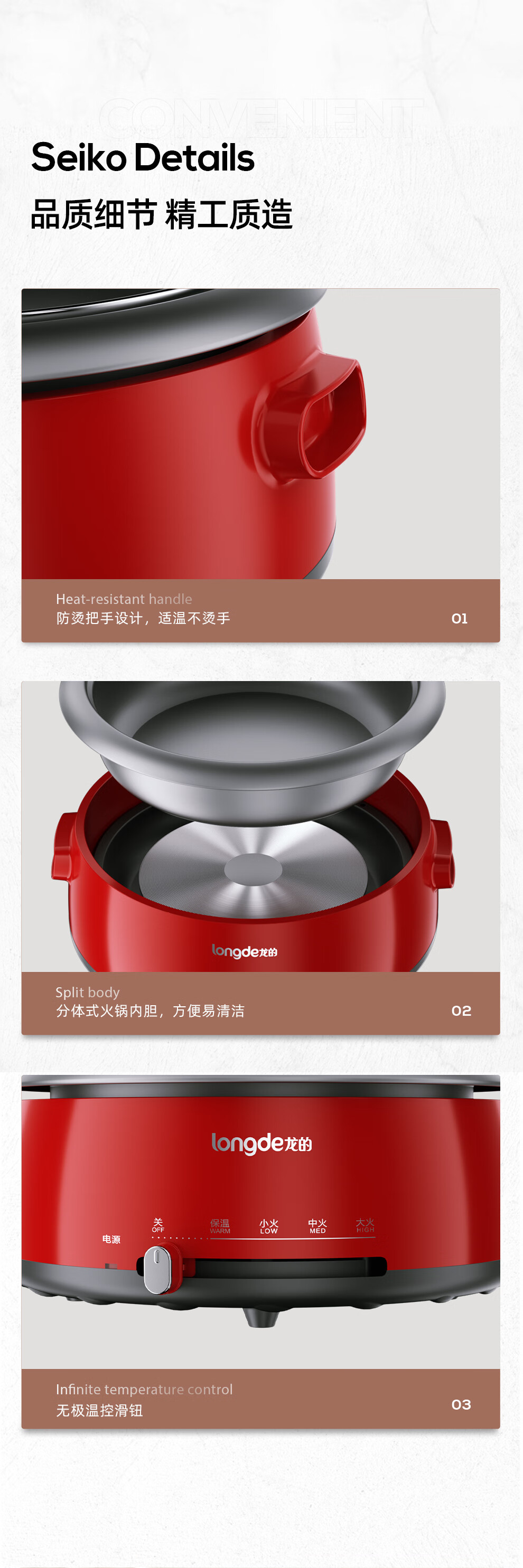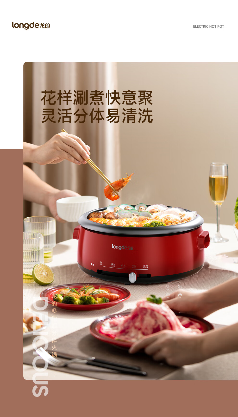 【小家电】龙的电火锅电热锅 4L大容量电煮锅多功能料理锅 家用涮烤火锅 LD-HG4136 HF