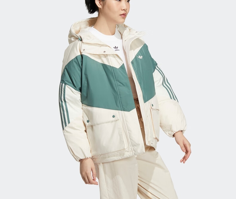 adidas阿迪达斯官方三叶草女装冬季新款运动530蓬保暖鸭绒羽绒服HS9518 黄白