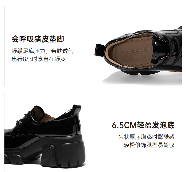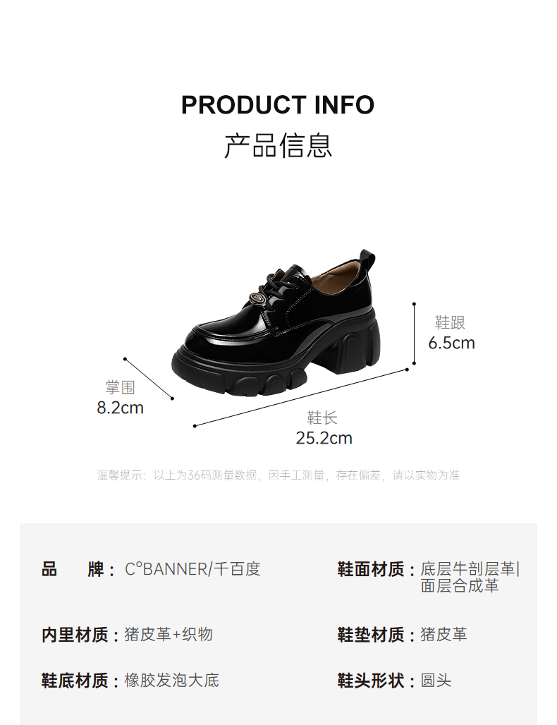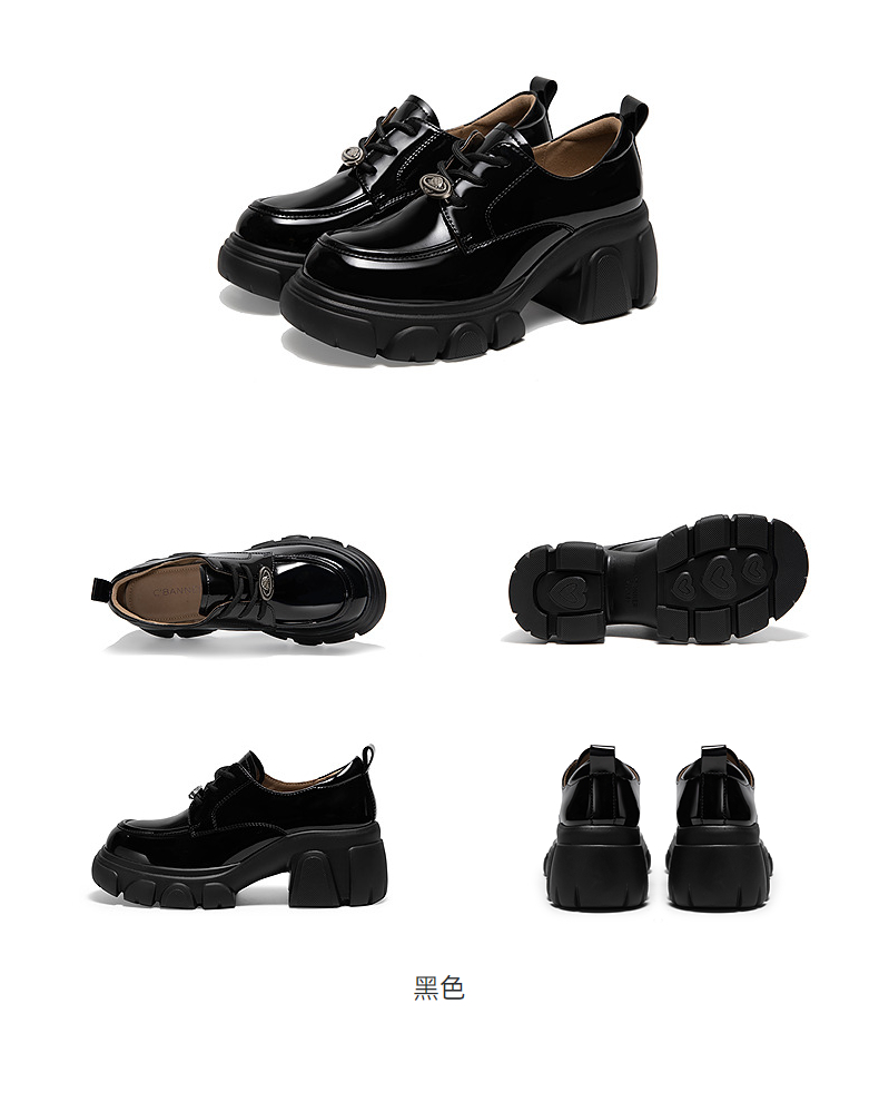 千百度厚底牛漆皮乐福鞋女款增高JK深口牛津小皮鞋A25186991