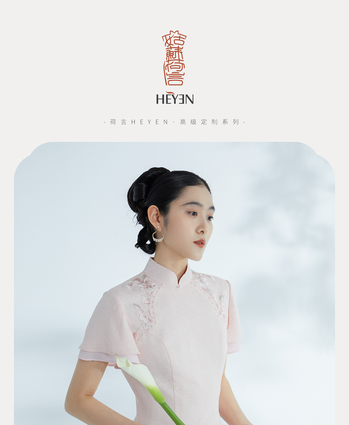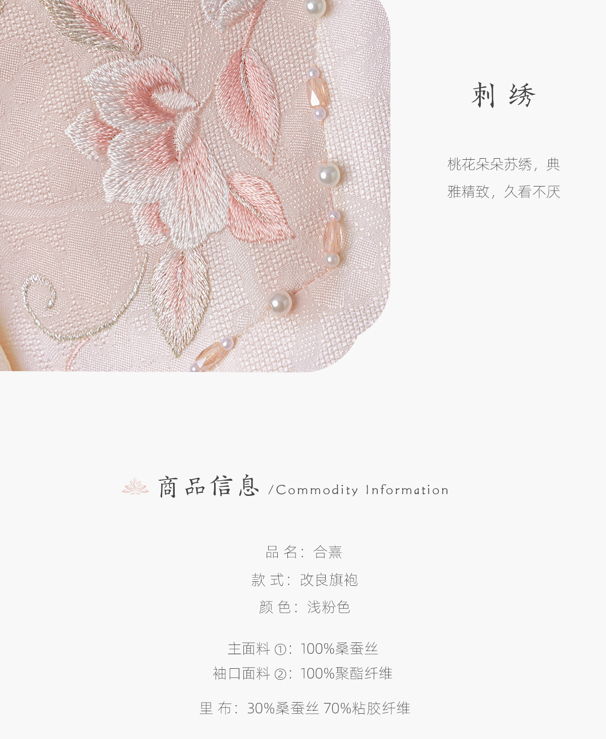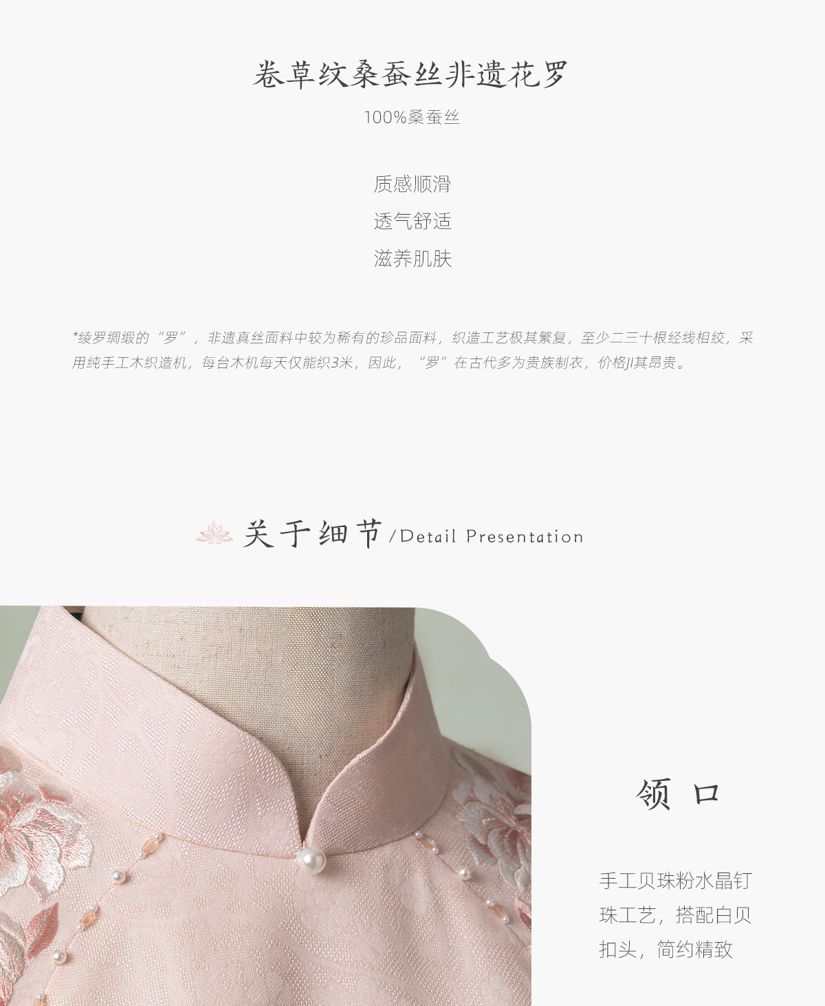 荷言HEYEN 合熹 卷草纹桑蚕丝非遗花罗旗袍雪纺飘袖桃花刺绣高级定制