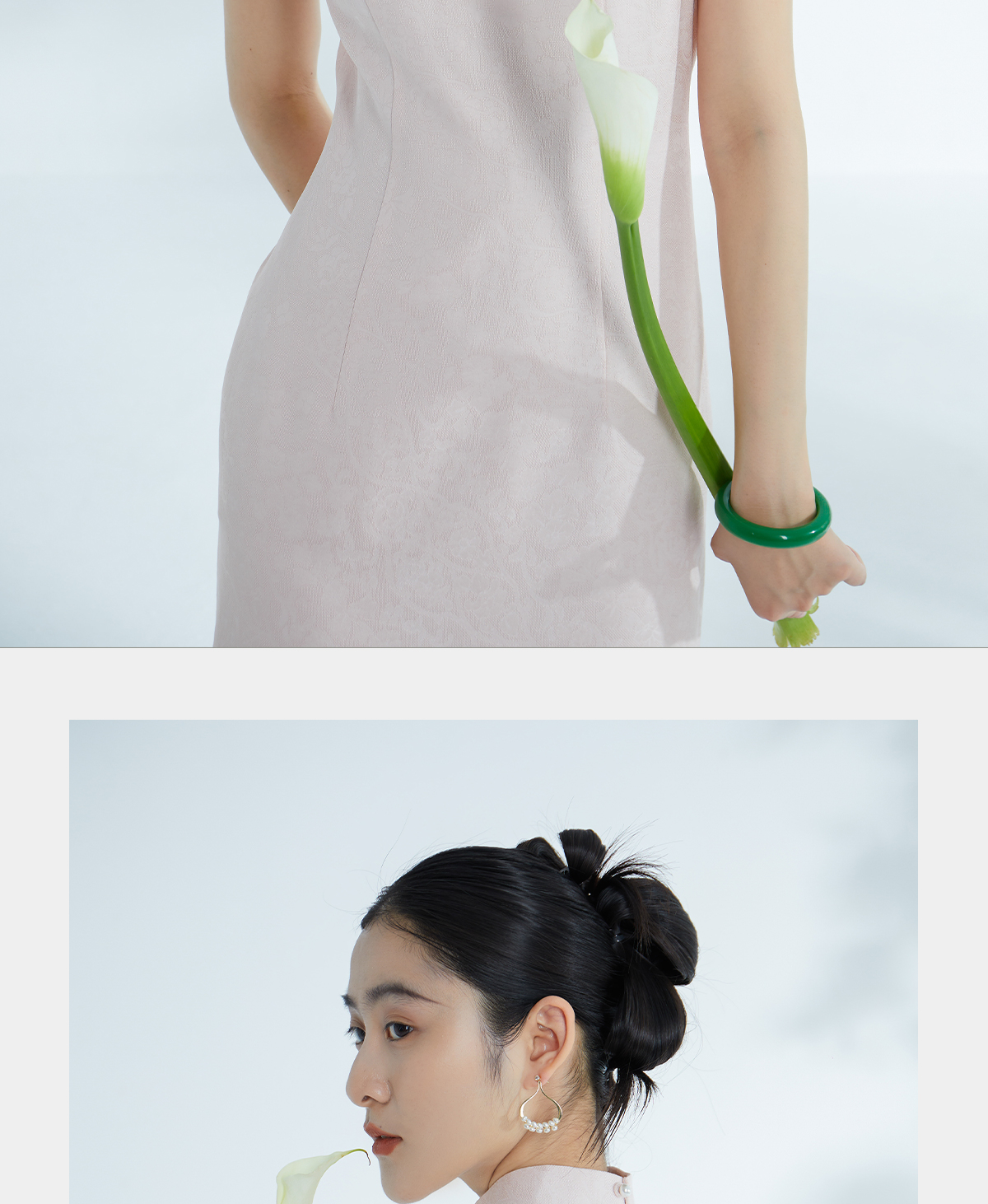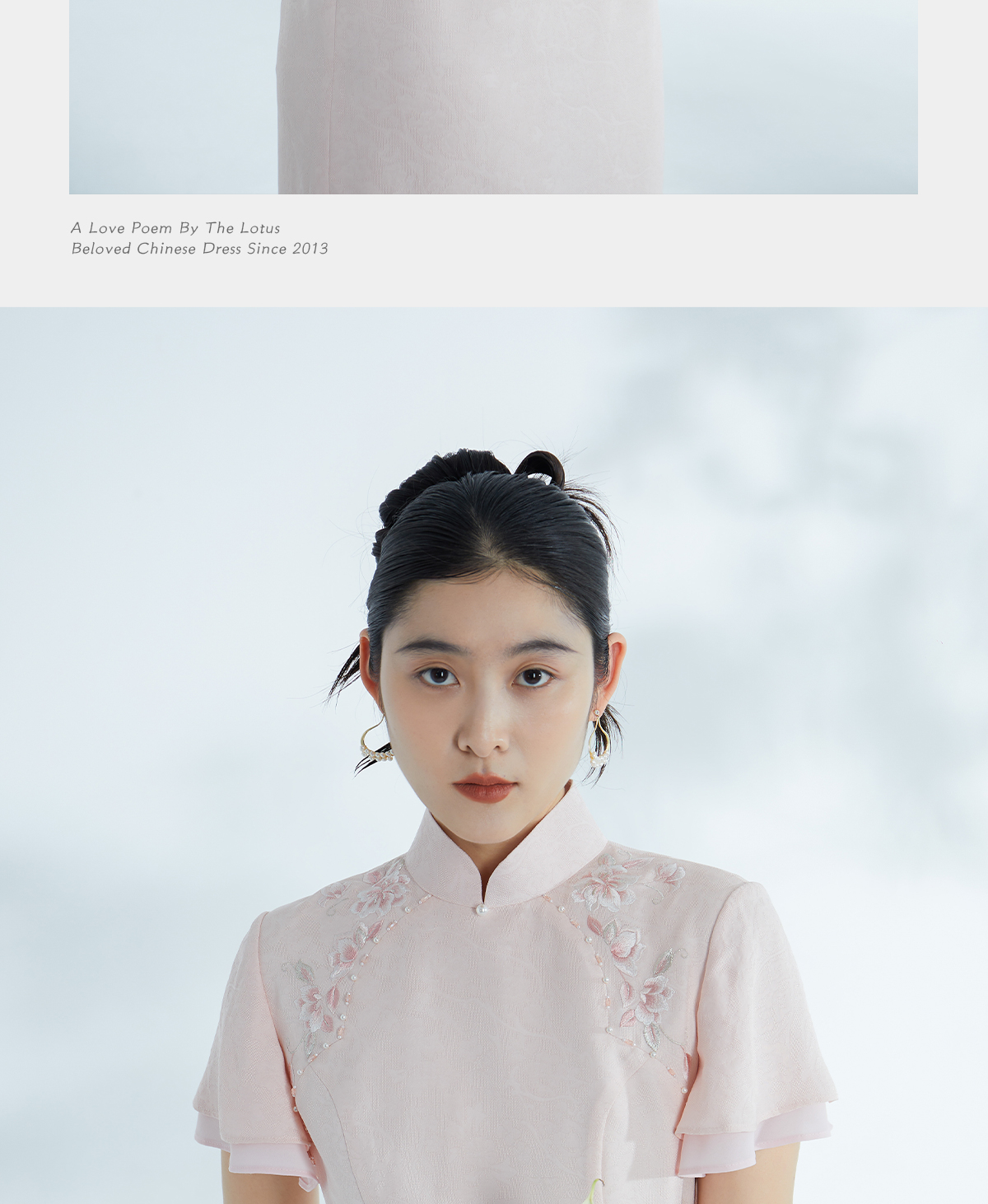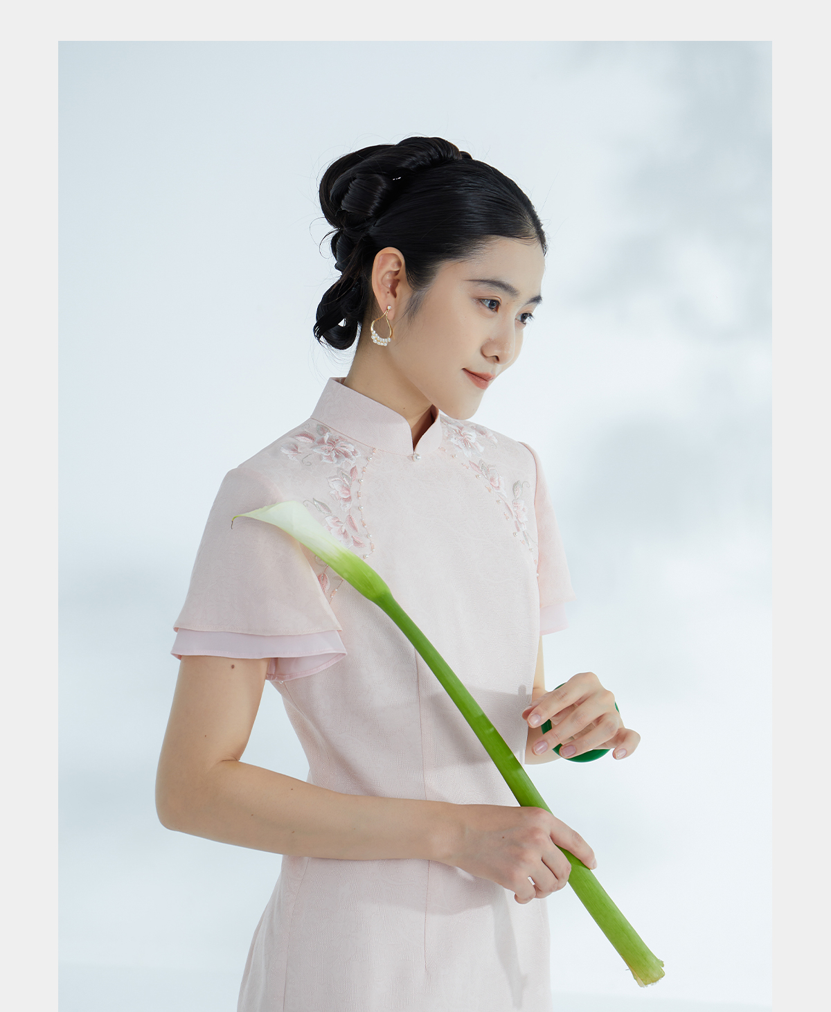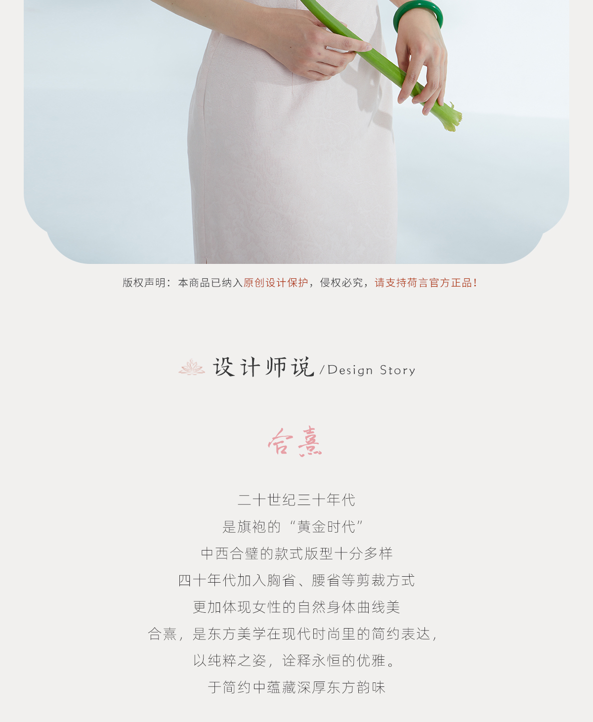 荷言HEYEN 合熹 卷草纹桑蚕丝非遗花罗旗袍雪纺飘袖桃花刺绣高级定制