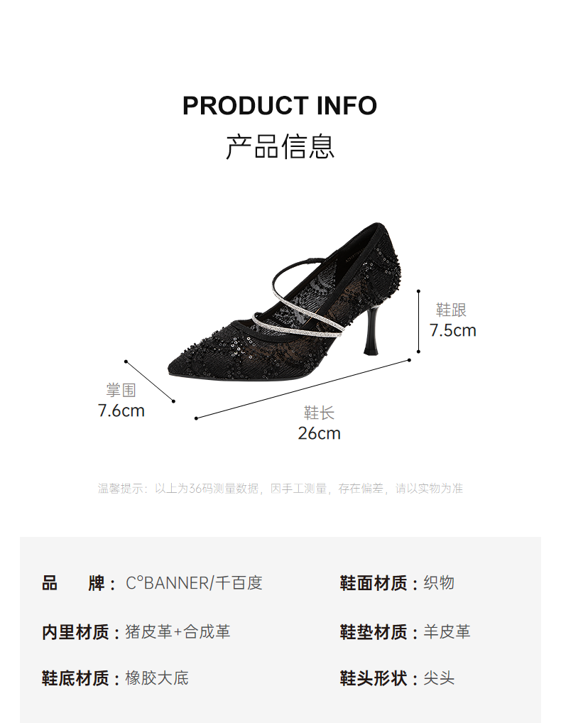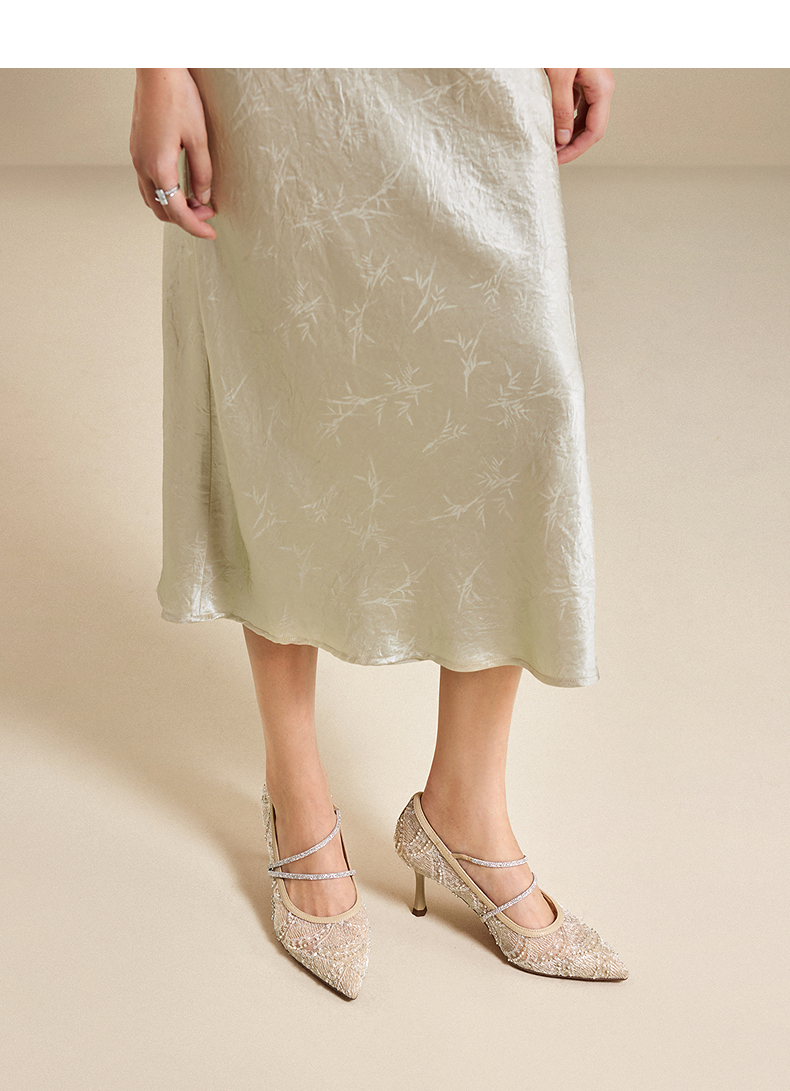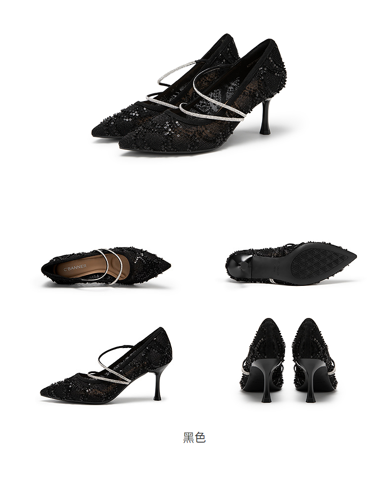千百度蕾丝面细高跟鞋女款宴会婚鞋尖头法式浅口单鞋A25157789