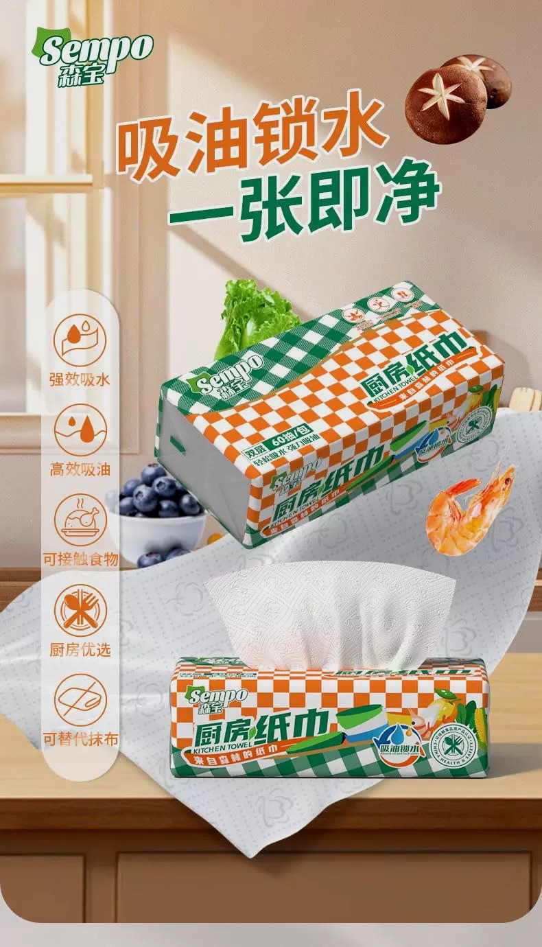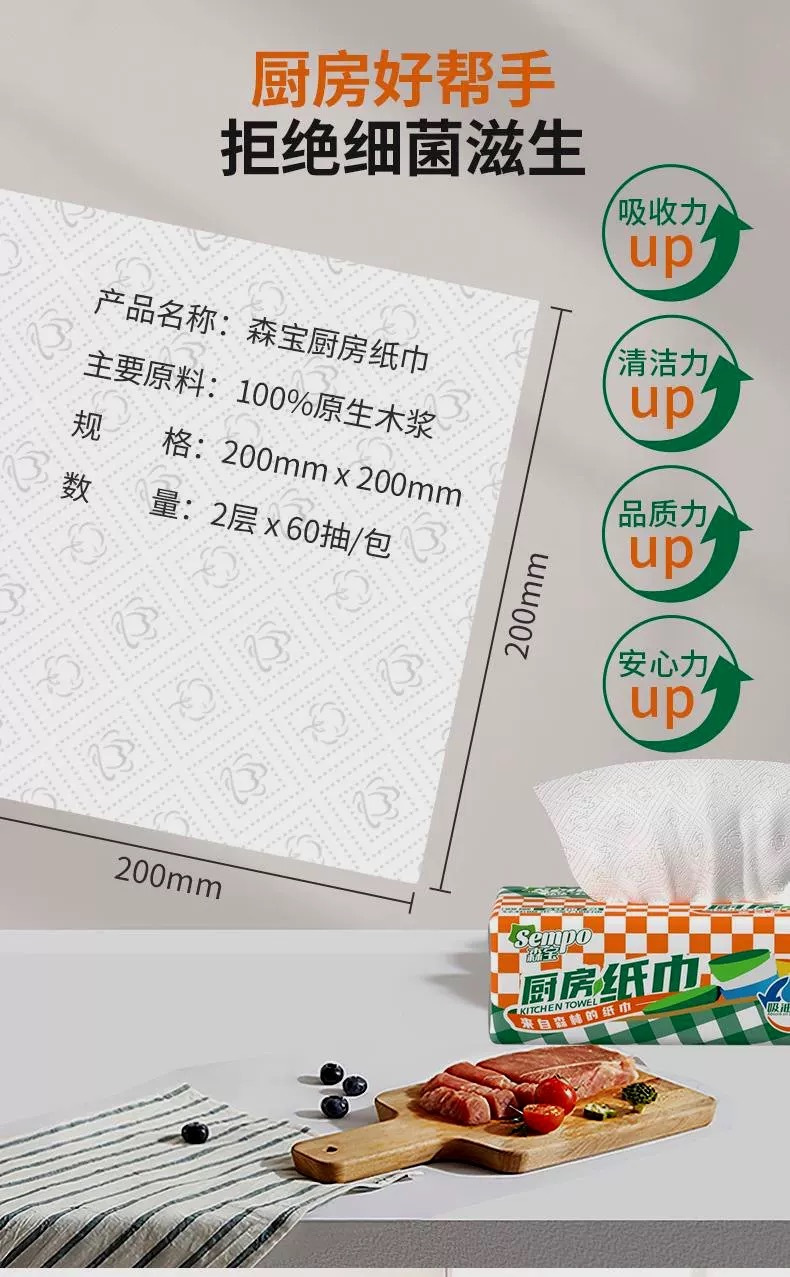 💰22元包邮, 【发9包】森宝厨房纸巾 ,永辉超市3.5元一包 100%原生木浆制作