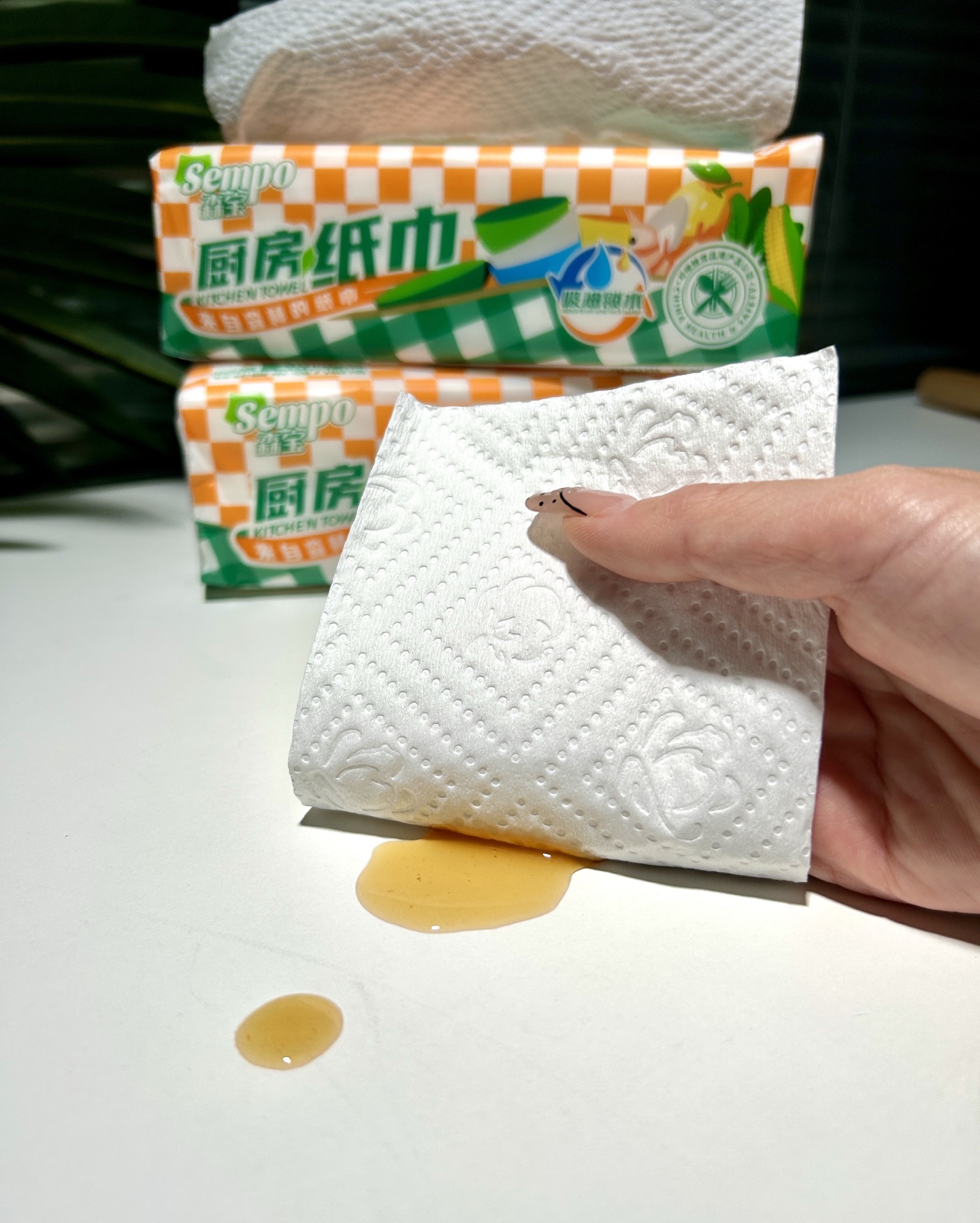 这款厨房纸可是4倍吸水8倍吸油,吸力超强