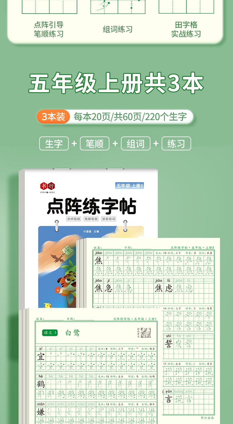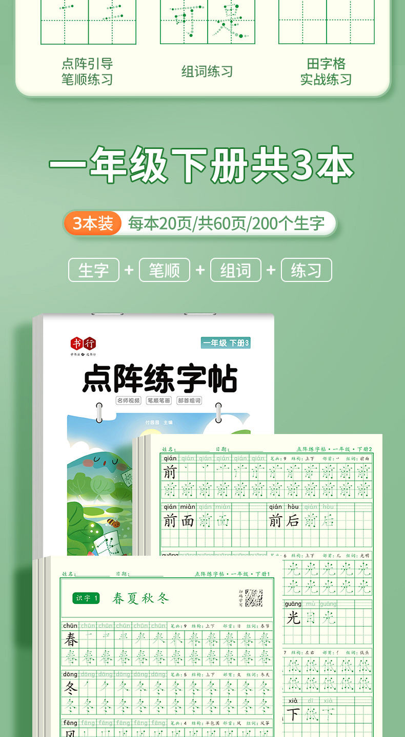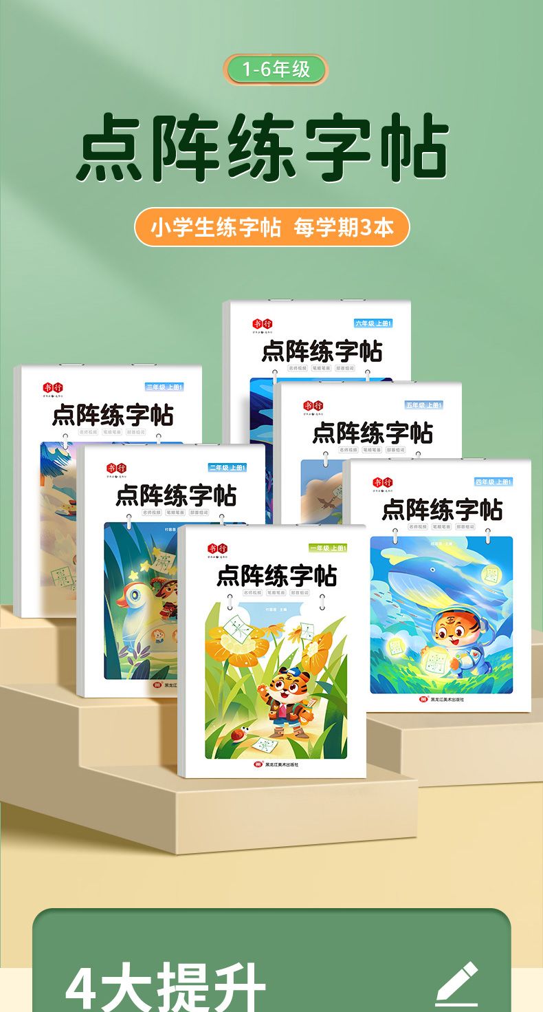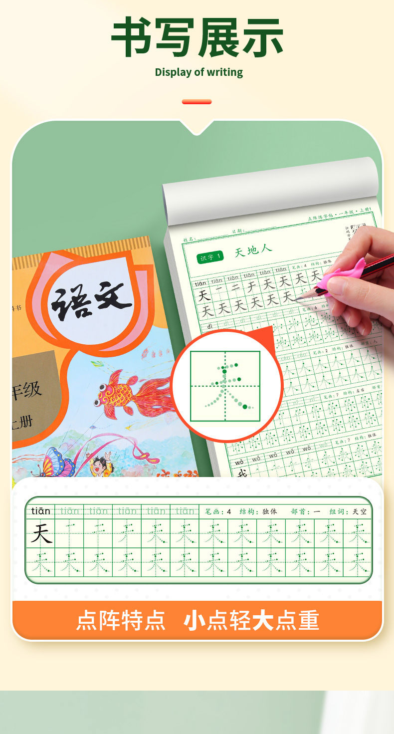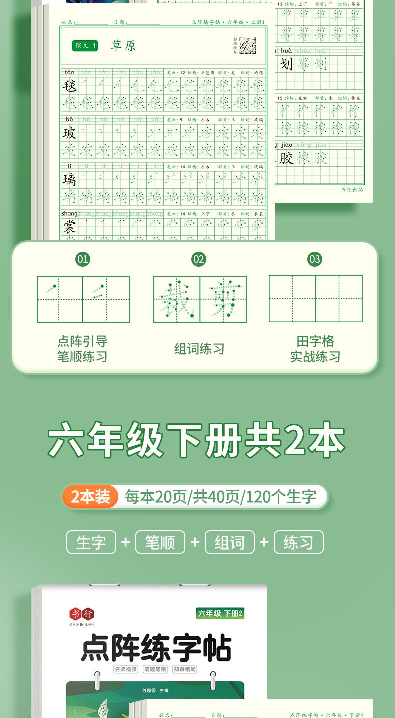 【大本小本】小学1-6年级人教版同步课本生字点阵练字帖含笔顺练习小点轻大点重掌握运笔规律有视频教程