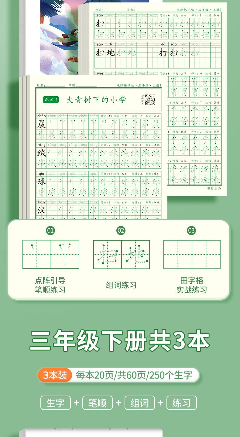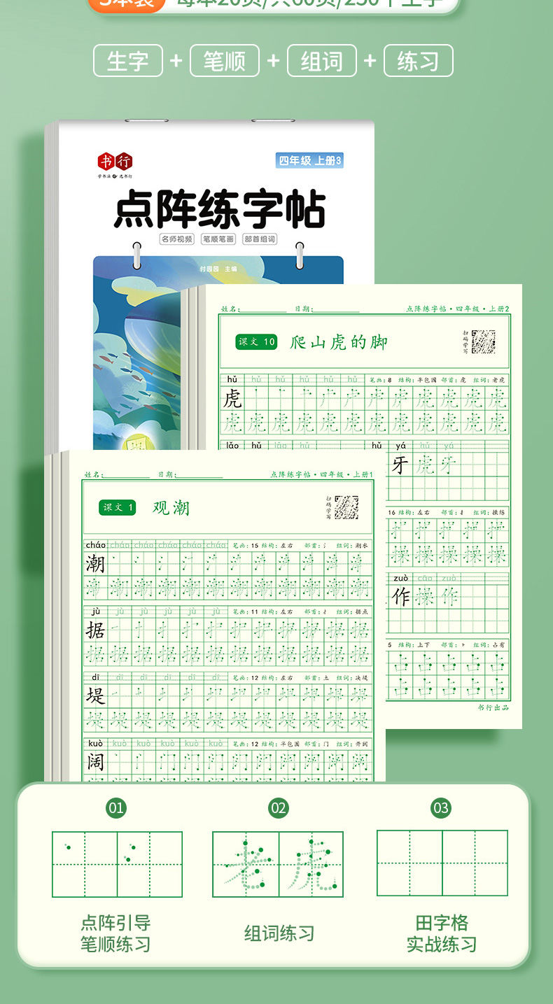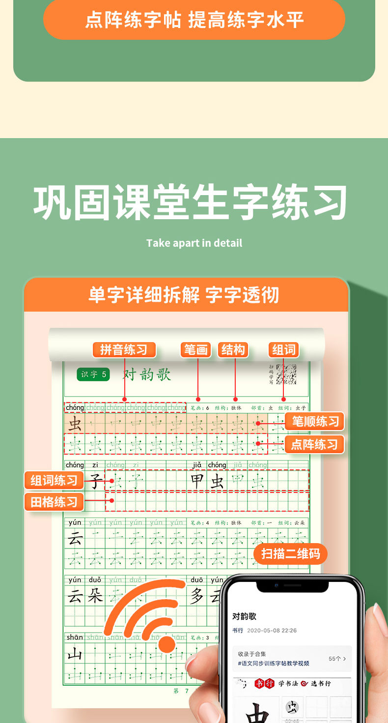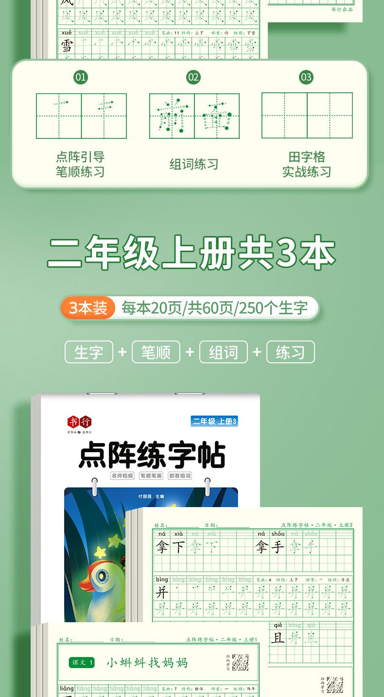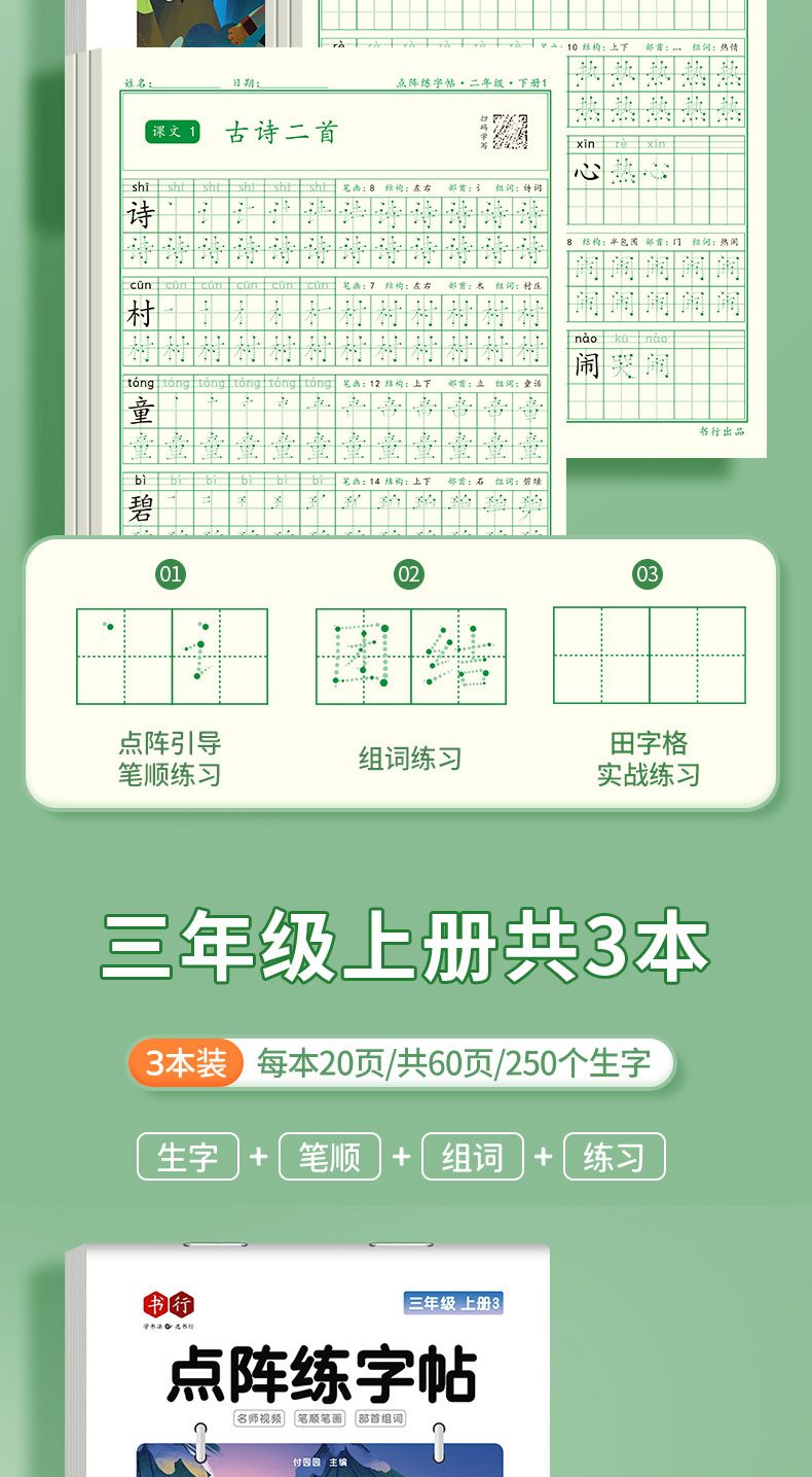 【大本小本】小学1-6年级人教版同步课本生字点阵练字帖含笔顺练习小点轻大点重掌握运笔规律有视频教程