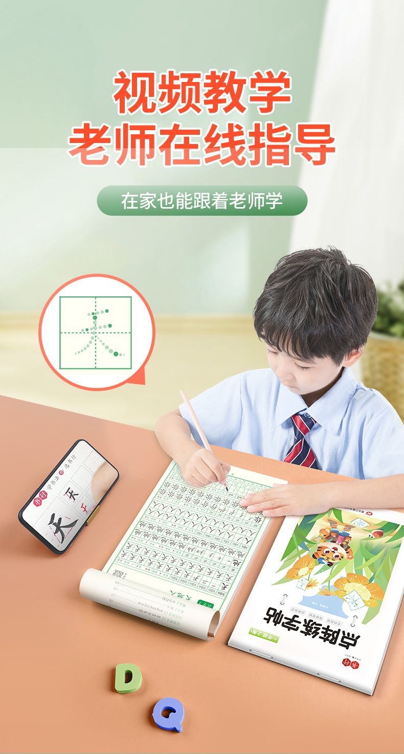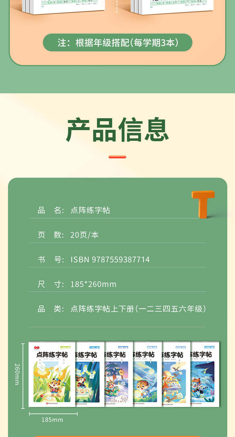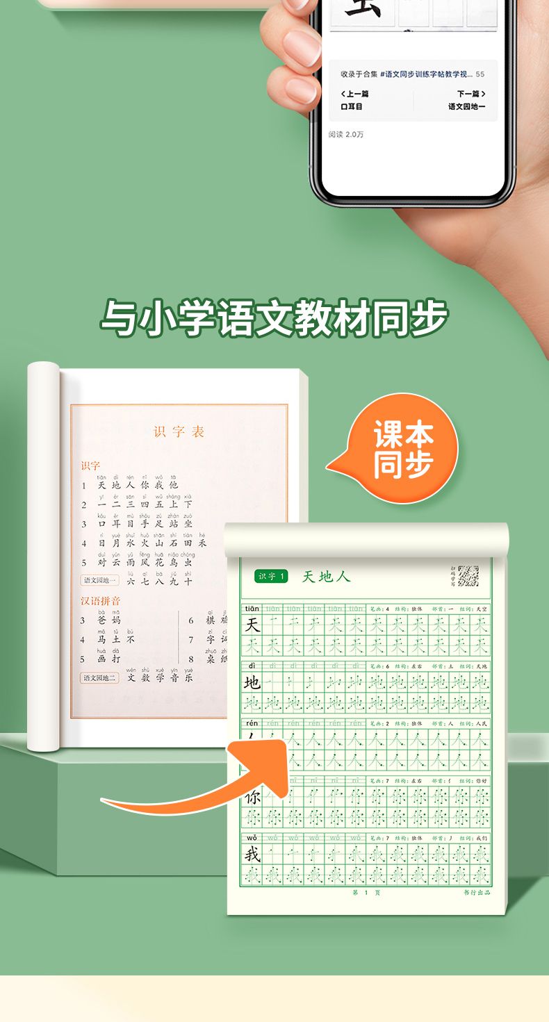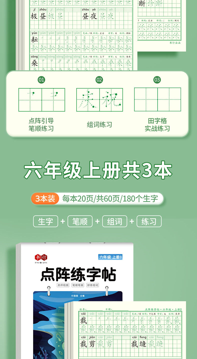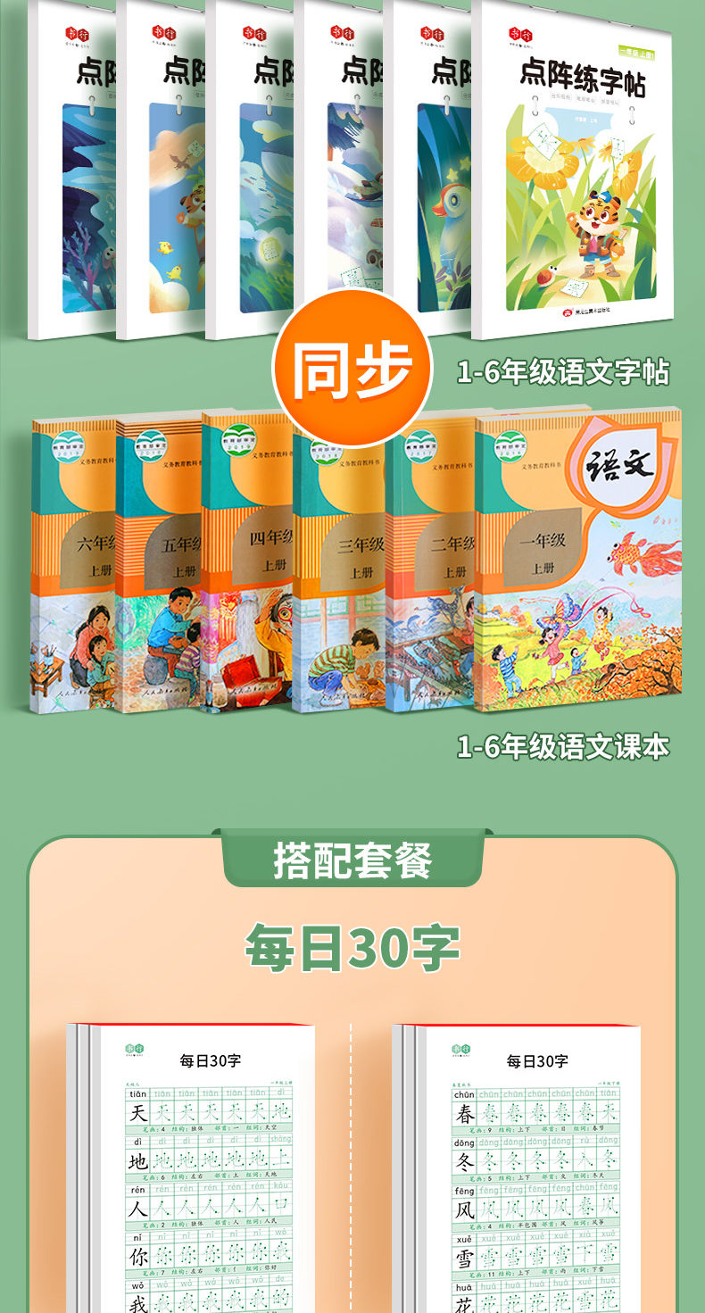 【大本小本】小学1-6年级人教版同步课本生字点阵练字帖含笔顺练习小点轻大点重掌握运笔规律有视频教程