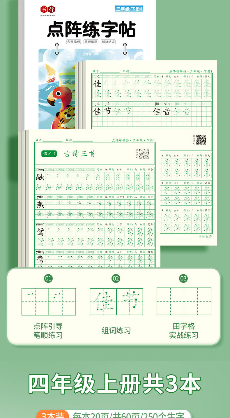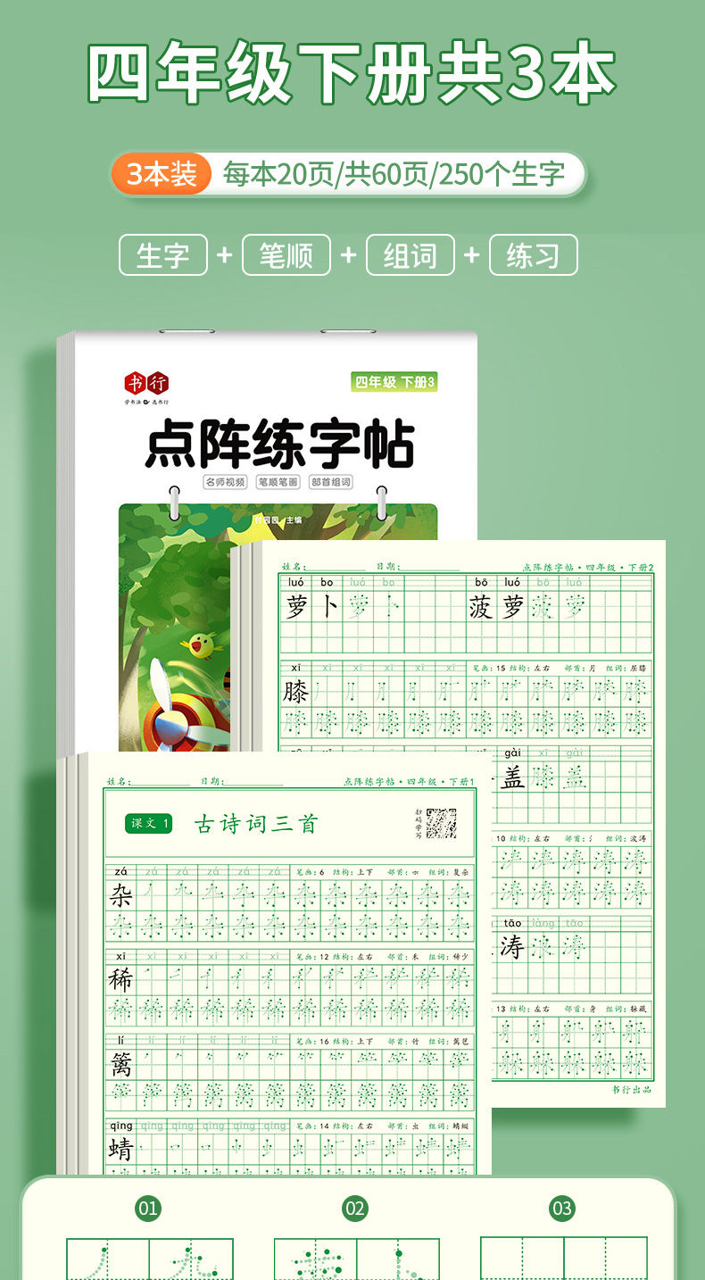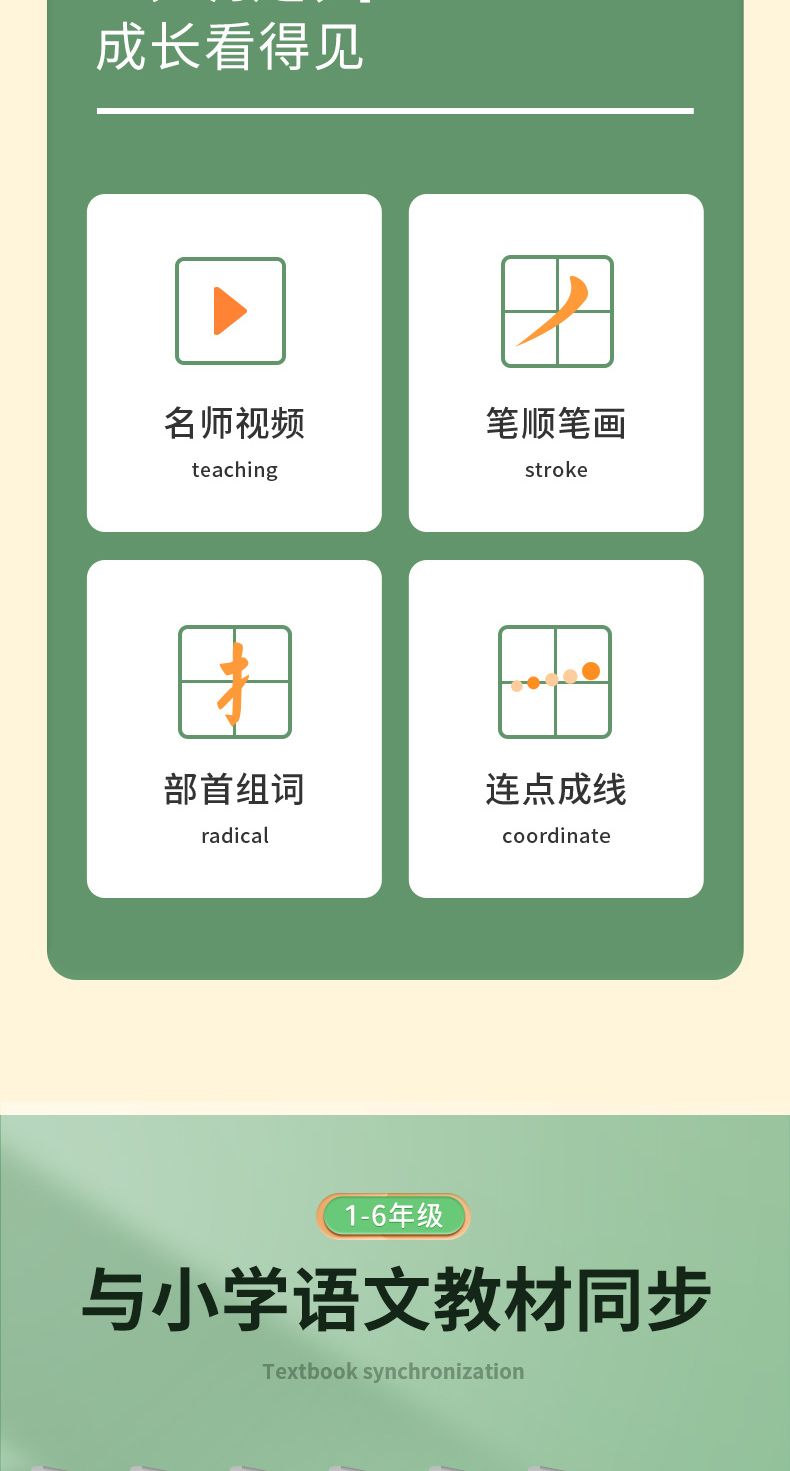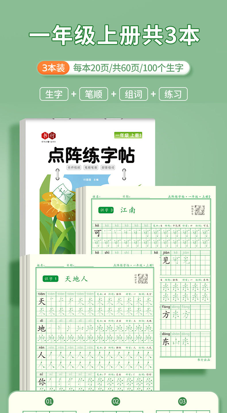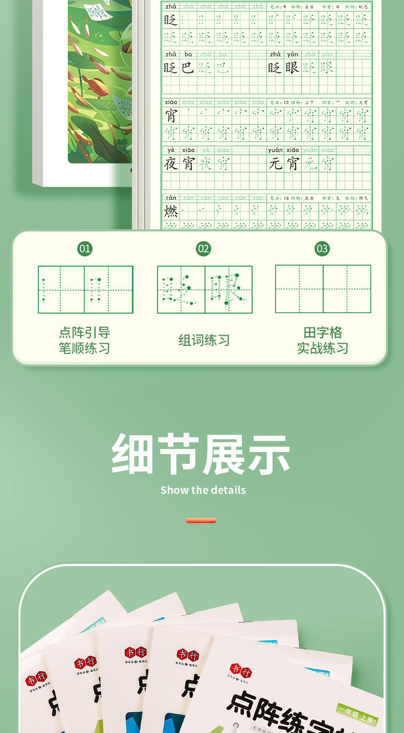 【大本小本】小学1-6年级人教版同步课本生字点阵练字帖含笔顺练习小点轻大点重掌握运笔规律有视频教程