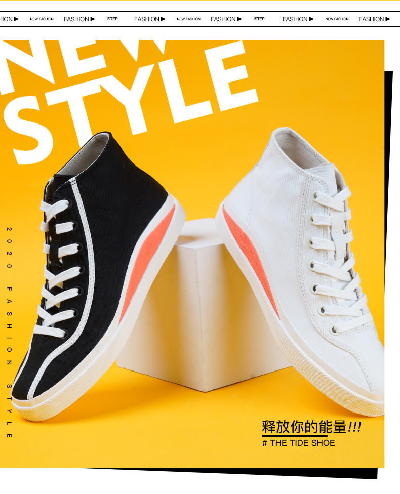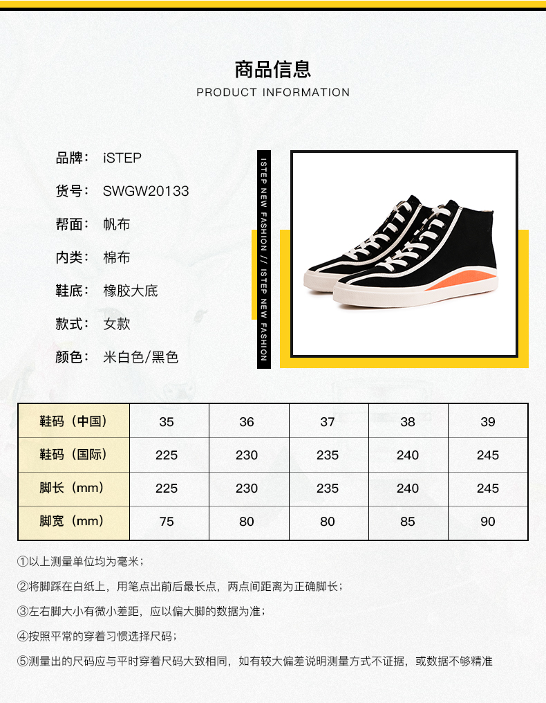 iSTEP小白鞋女高帮帆布鞋女鞋2023新款秋季百搭时尚潮流平底板鞋