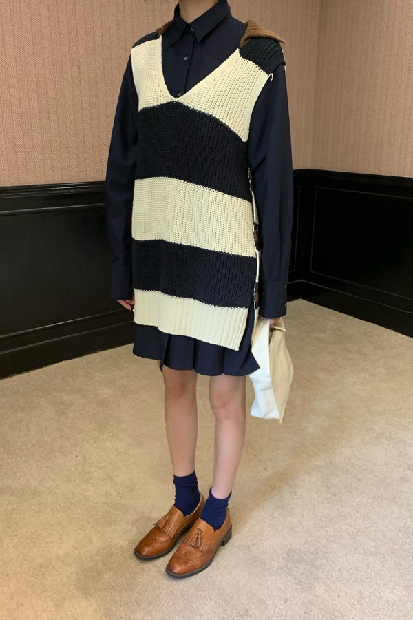 Kai & Kiera 时尚叠穿条纹马甲毛衣两件套连衣裙 21492