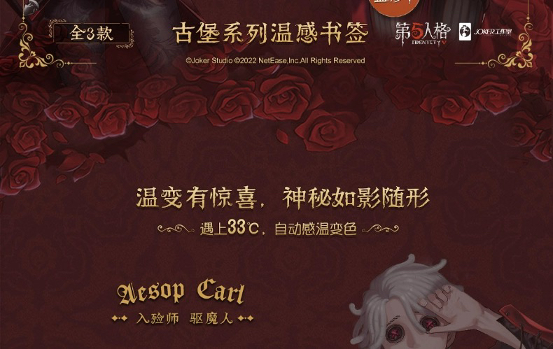 第五人格古堡系列第二弹-温感书签一套三款