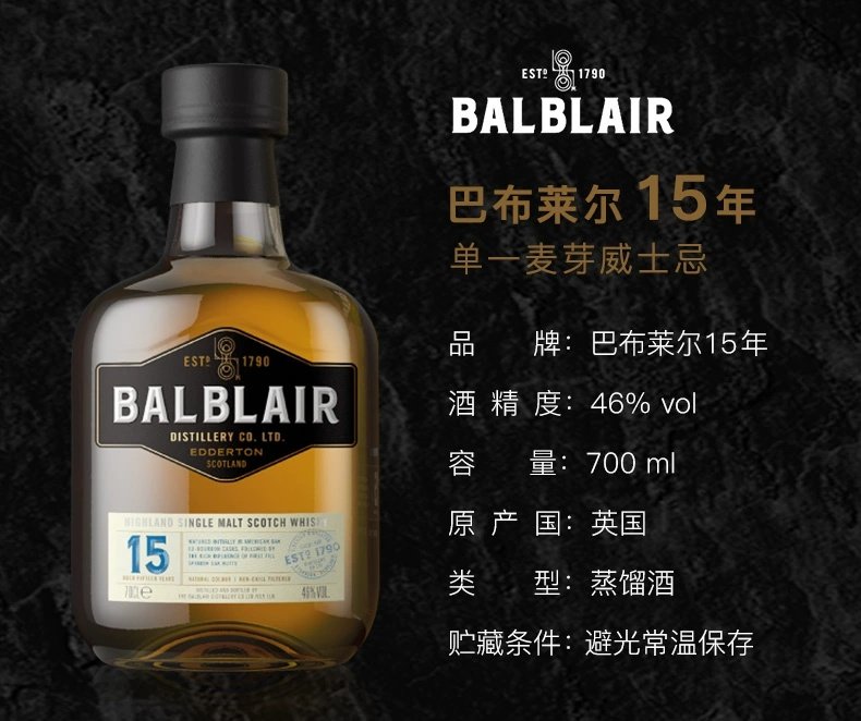 巴布莱尔15年 单一麦芽威士忌700ml
