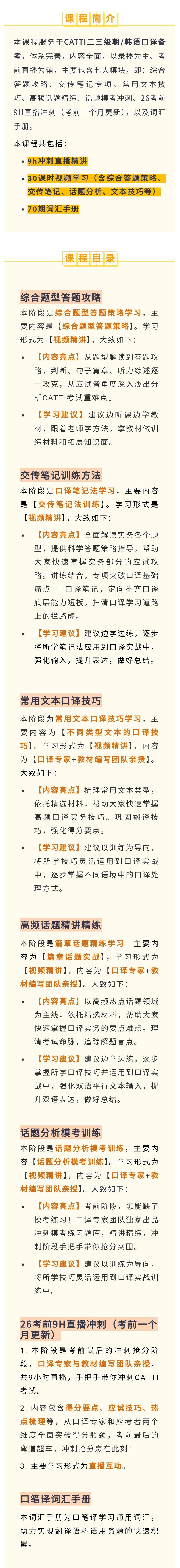 2026CATTI考试 二/三级 日/韩/俄/法/德/西语 口笔译 直通车 电子课