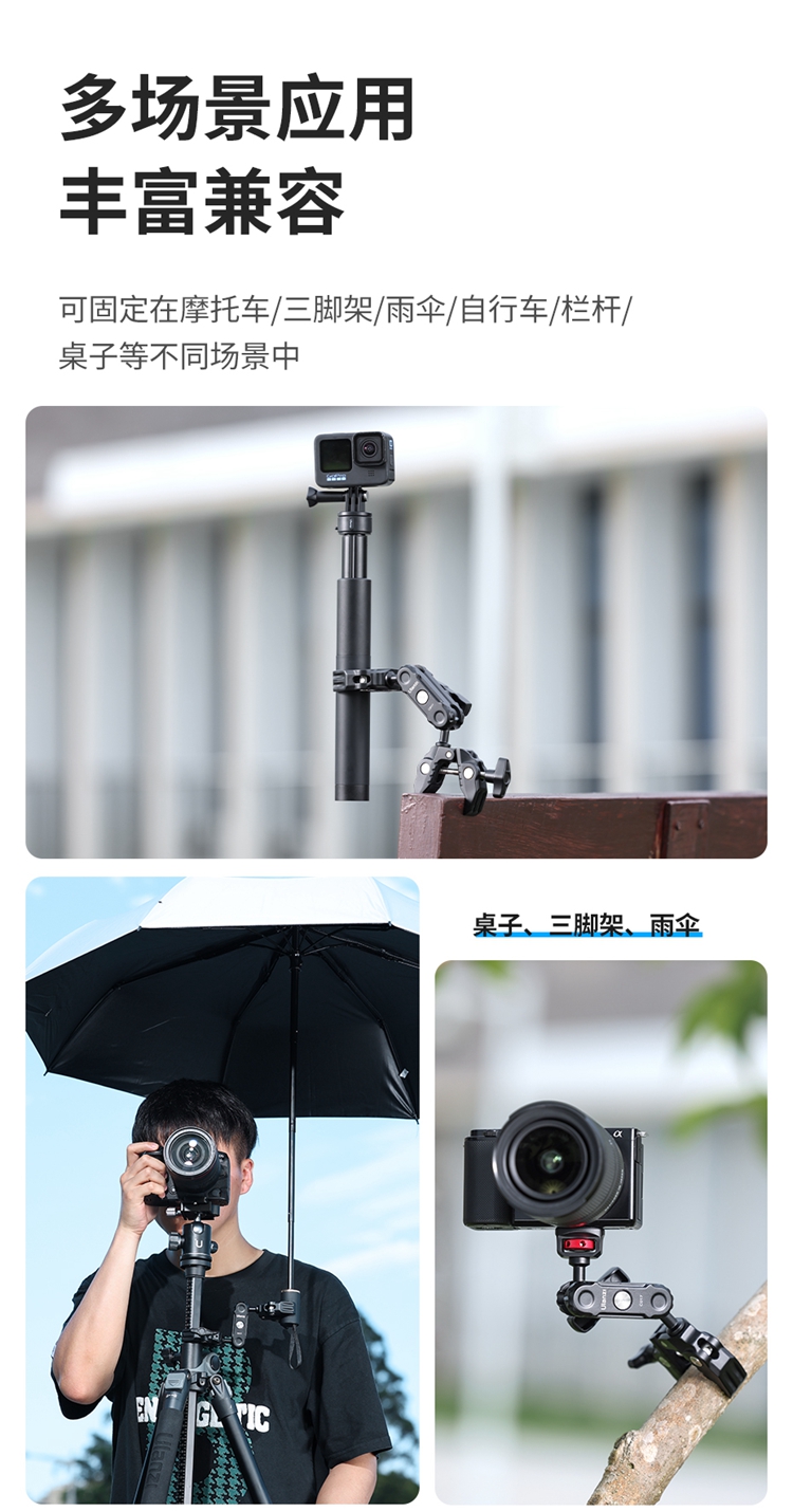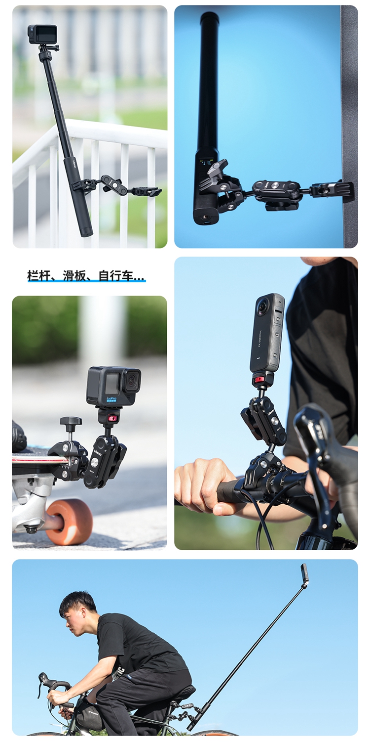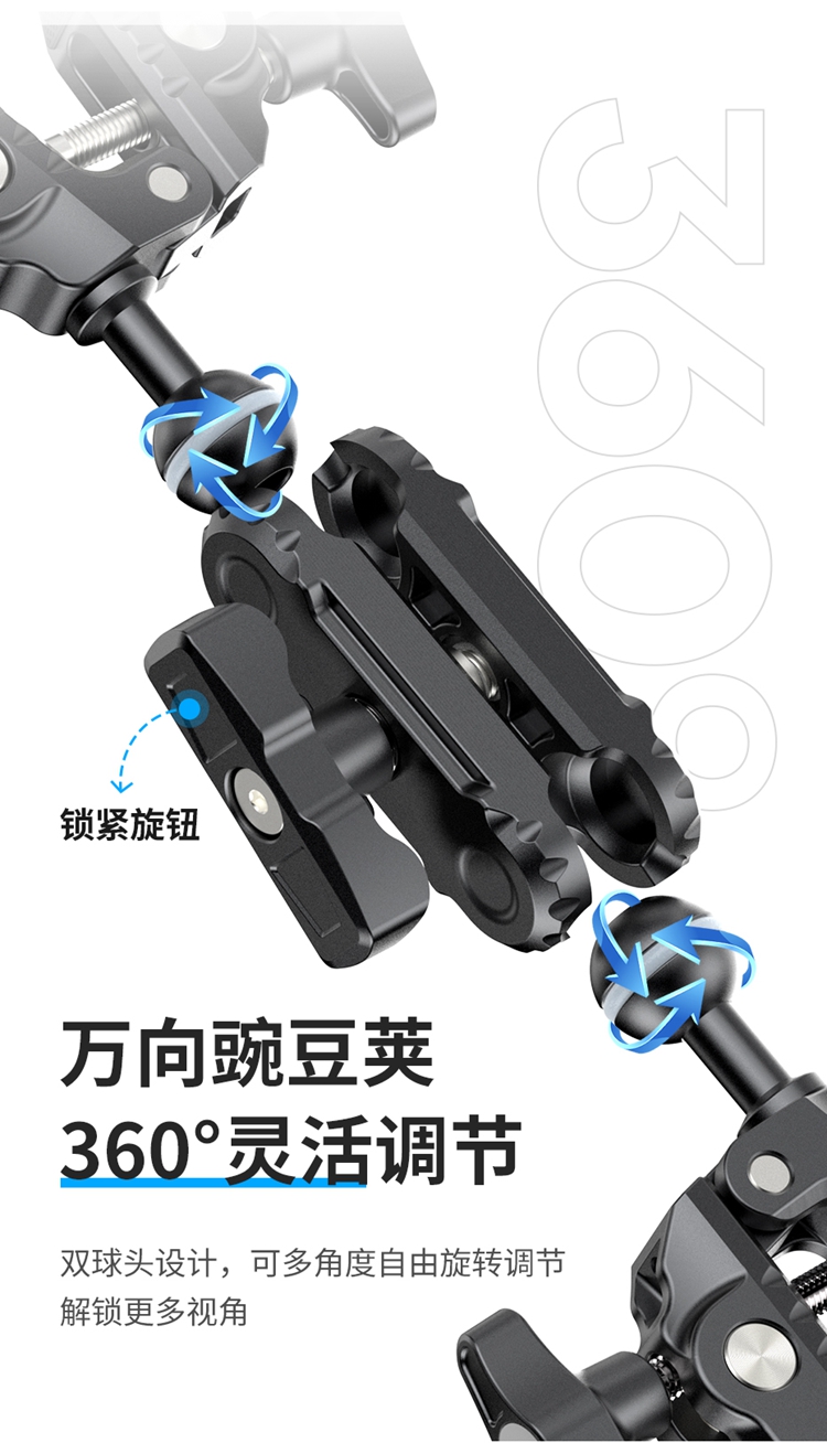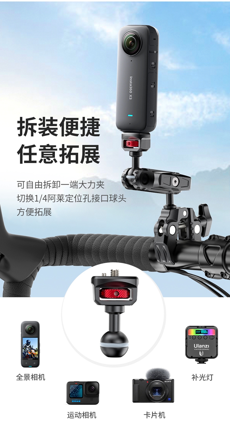 Ulanzi优篮子CO17双头万向大力夹适用Gopro运动相机手机摩托车骑行蟹钳夹insta360骑行夹action3/4支架配件