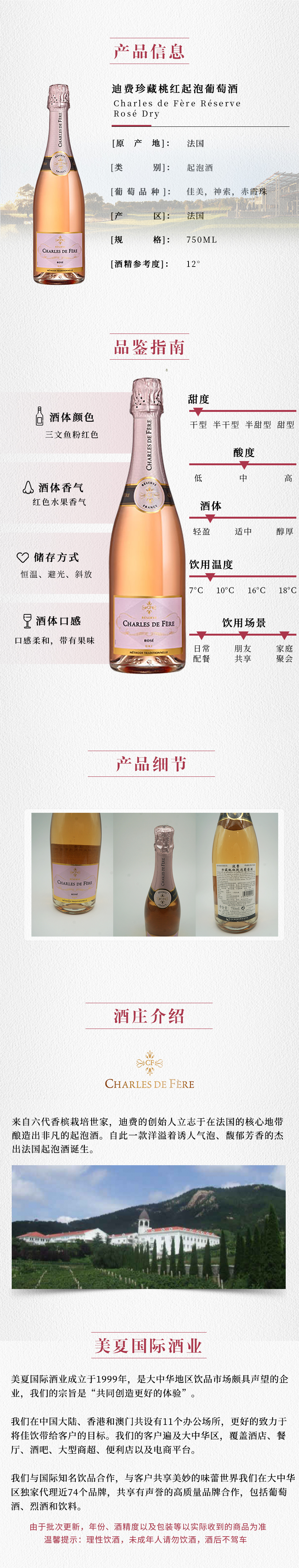 进口法国迪费珍藏桃红起泡酒 750ml精选包邮