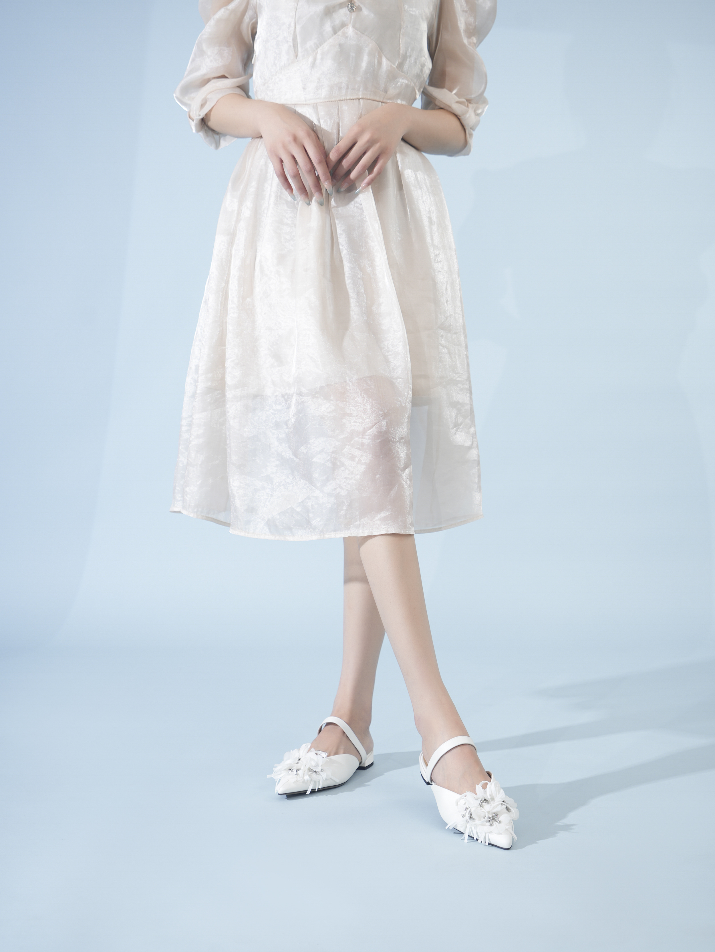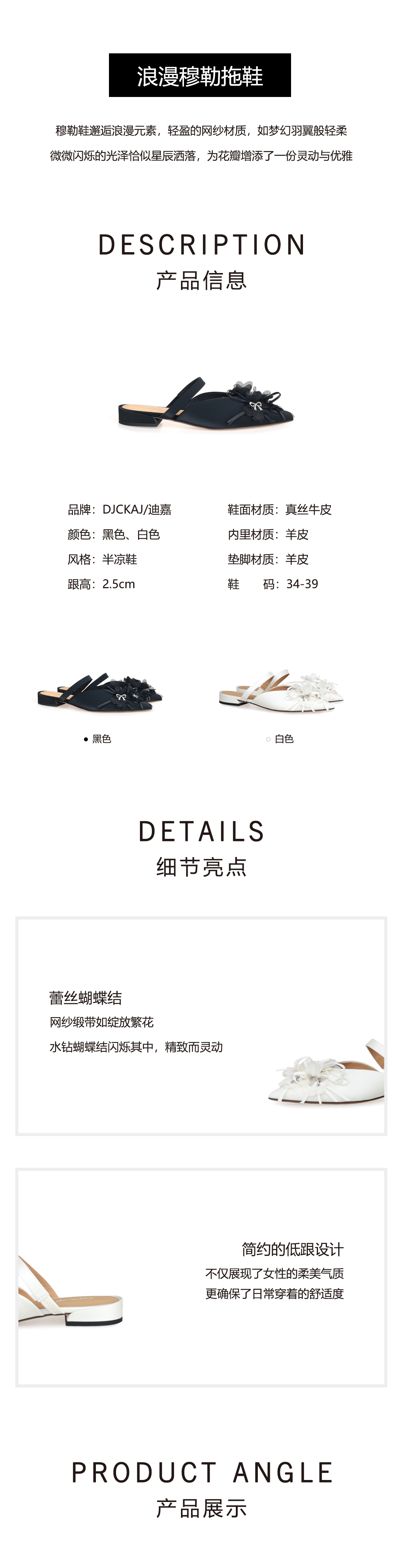 豪麟名鞋奥莱迪嘉女鞋半凉鞋真丝牛皮DJYYA51WB014白色 原价1660元