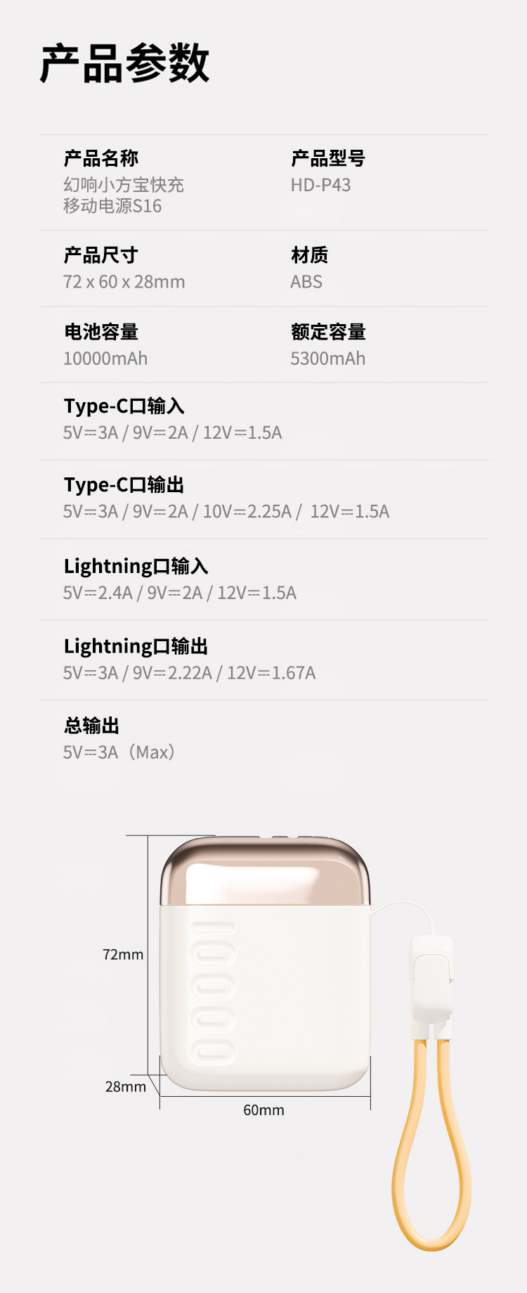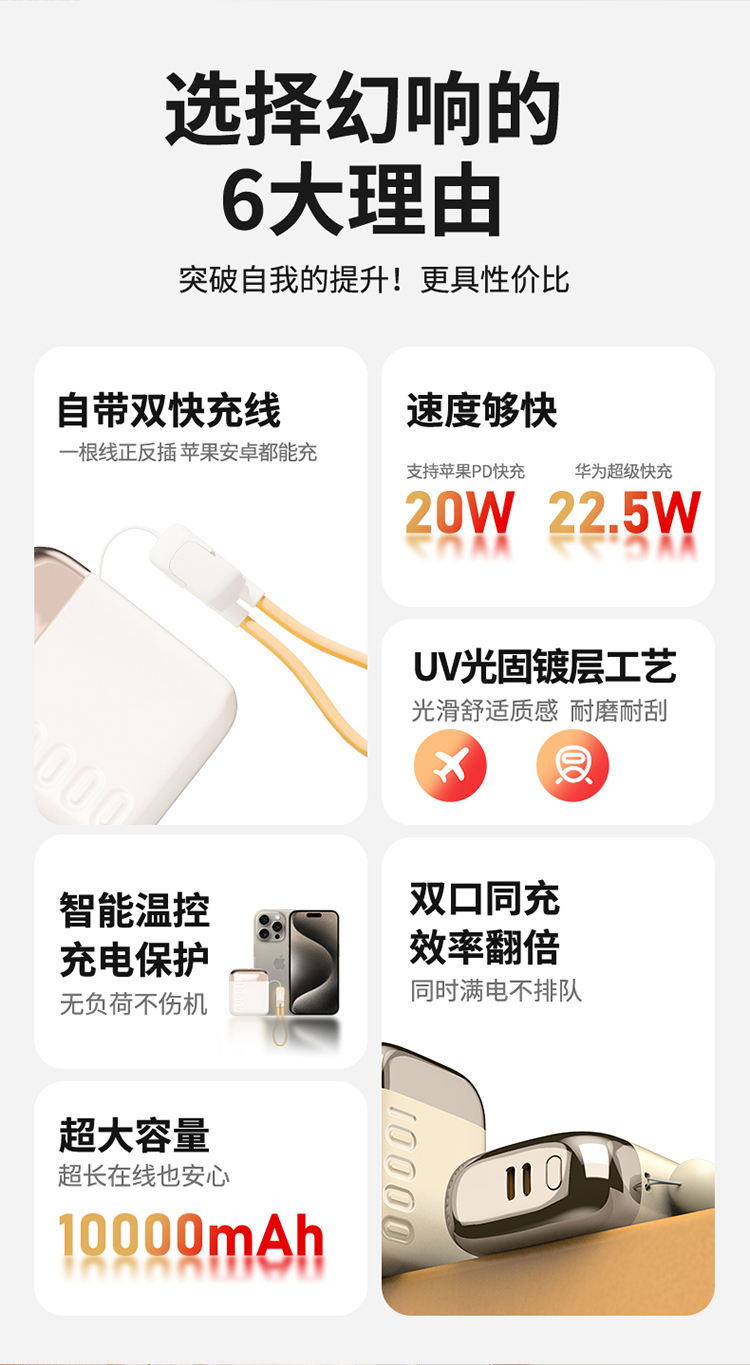 【预售15天】幻响·小方宝超级快充移动电源S16 10000mAh 国家3C安全认证【福利品】