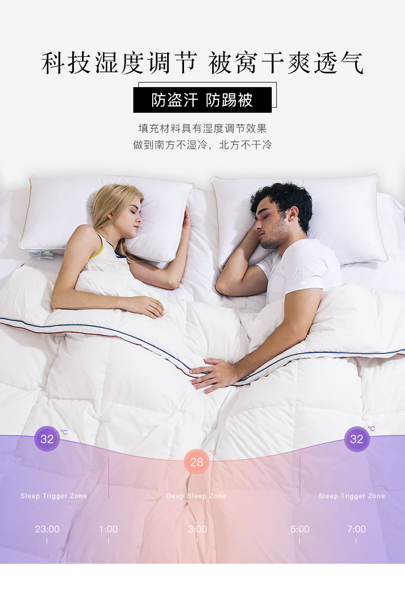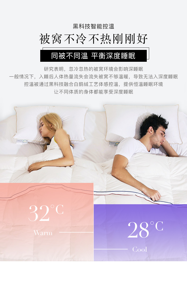 从2015年进入中国至今,DOWANLAND China已经成功推出多款创新产品,针对情侣间男女睡眠温度差异推出了“同被不同温”的控温鹅绒被;针对怕冷体质,同时也为了解决冬季“入被凉”问题推出了“自发热”的暖感系列;而为了应对酷暑,则创新研发了“接触瞬间降温”的冷感被等等。其中很多都成为了引领行业的趋势品。