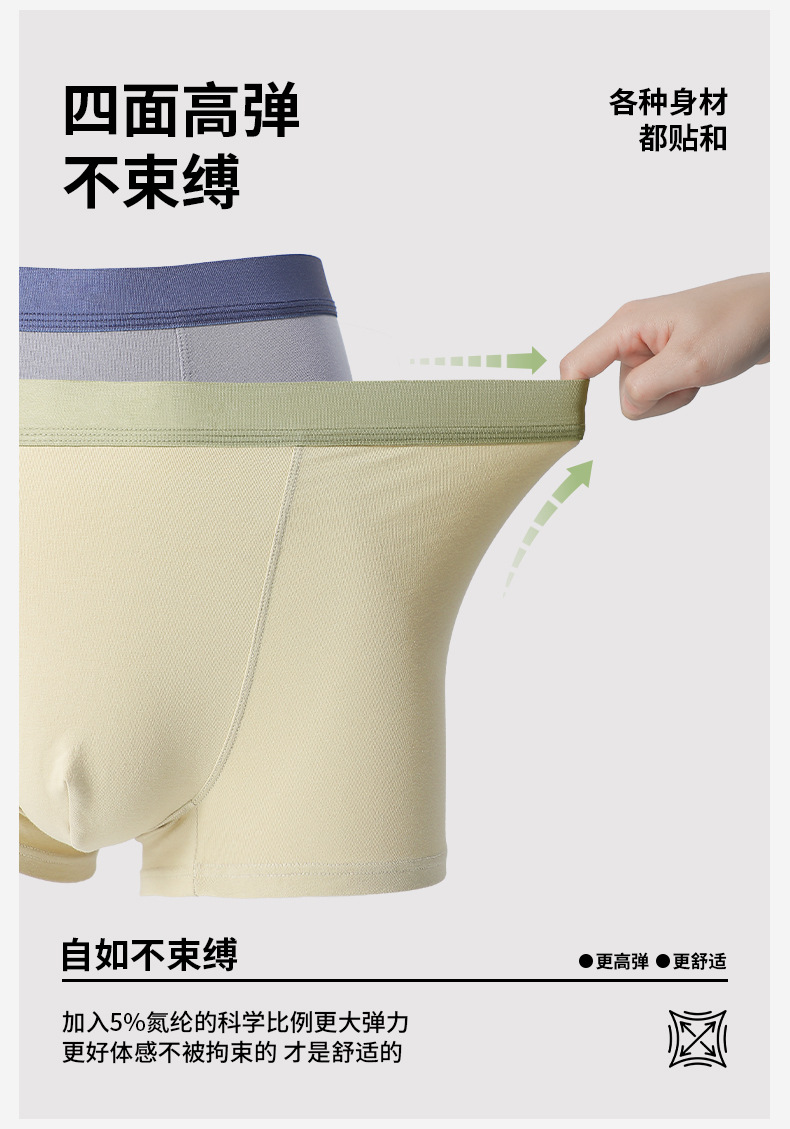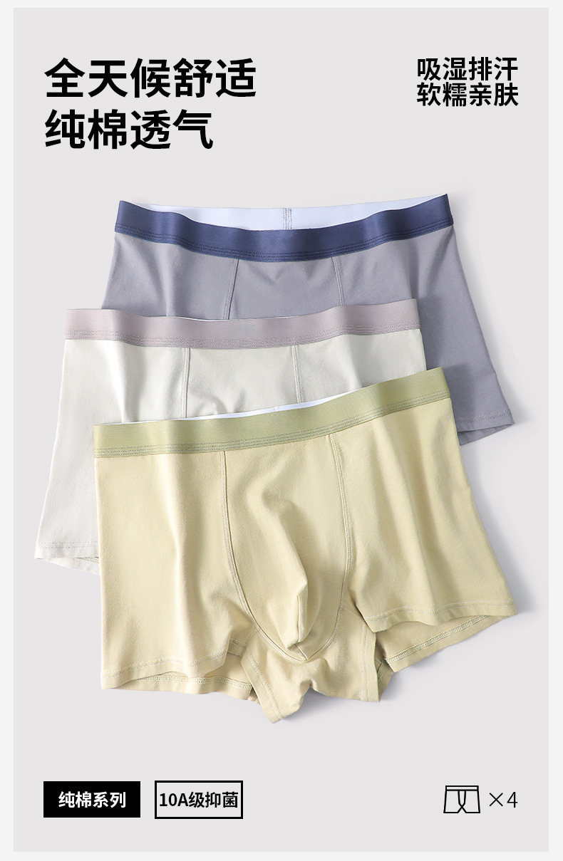 纯棉男士内裤男式中腰无痕平角裤7A抑菌裆夏吸汗透气男生四角短裤