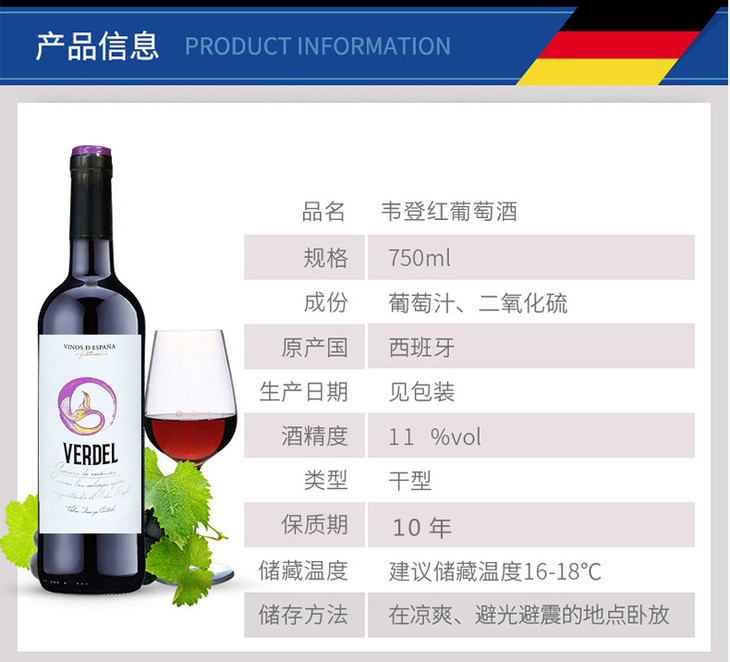 西班牙韦登干红葡萄酒 整箱750ml×6瓶包邮