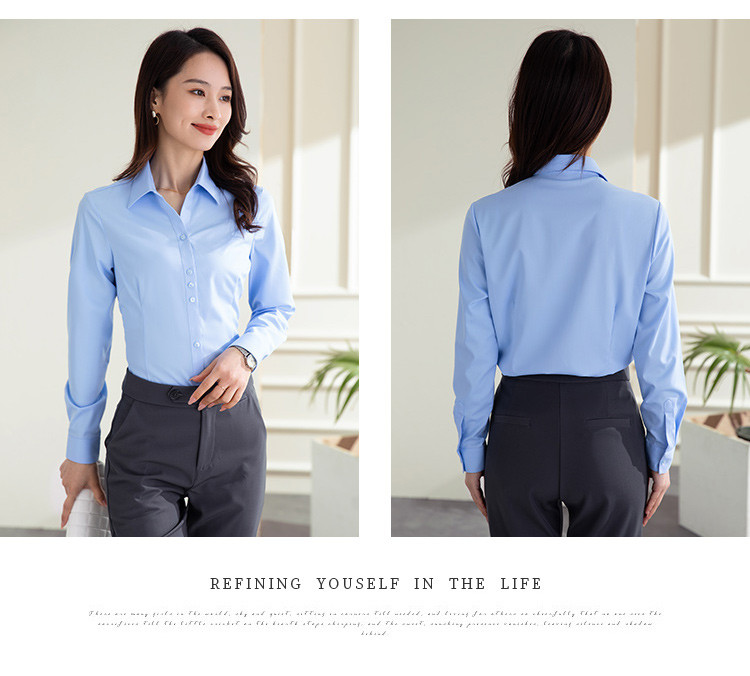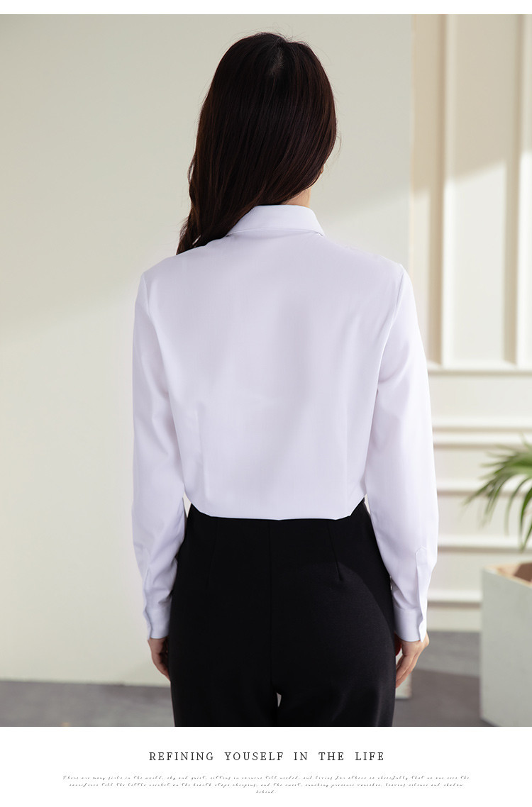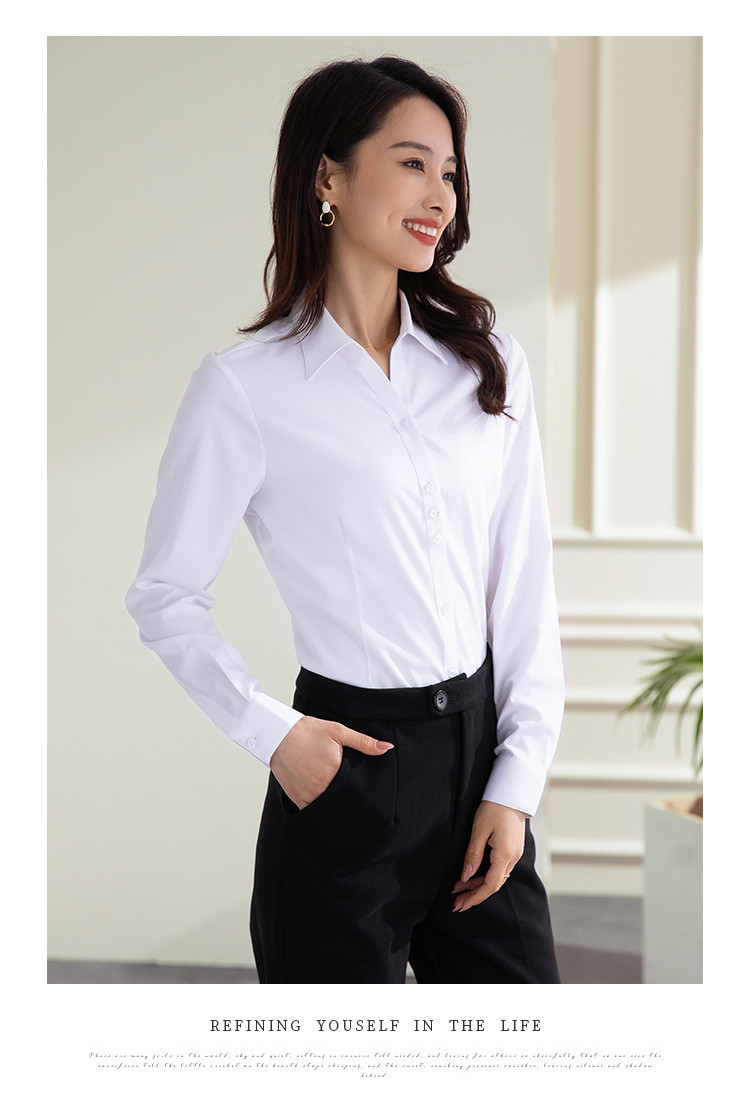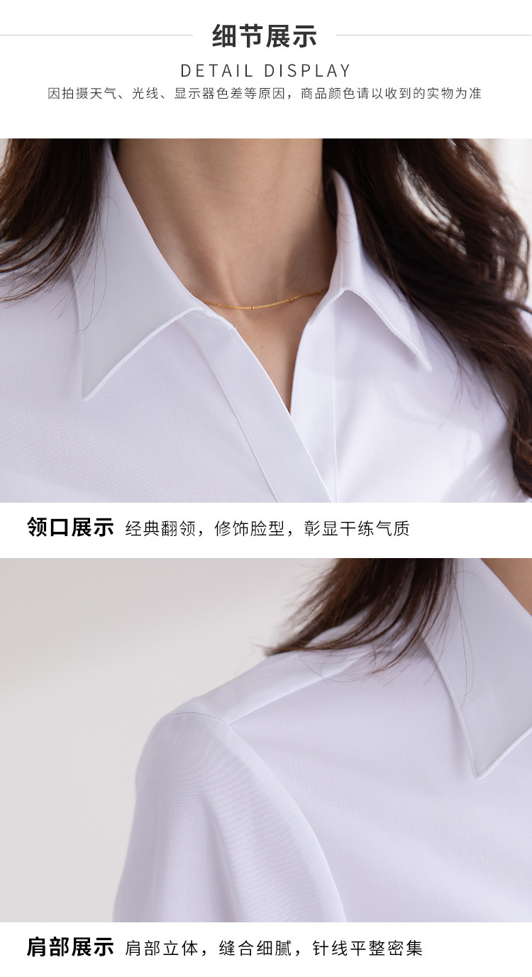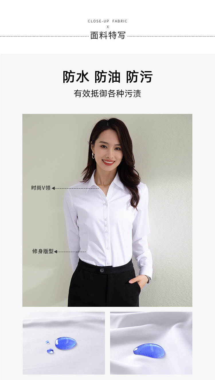 【防水防油防污】罗蒙女士长袖V领衬衫纯色舒适抗皱易清洗商务通勤衬衣女