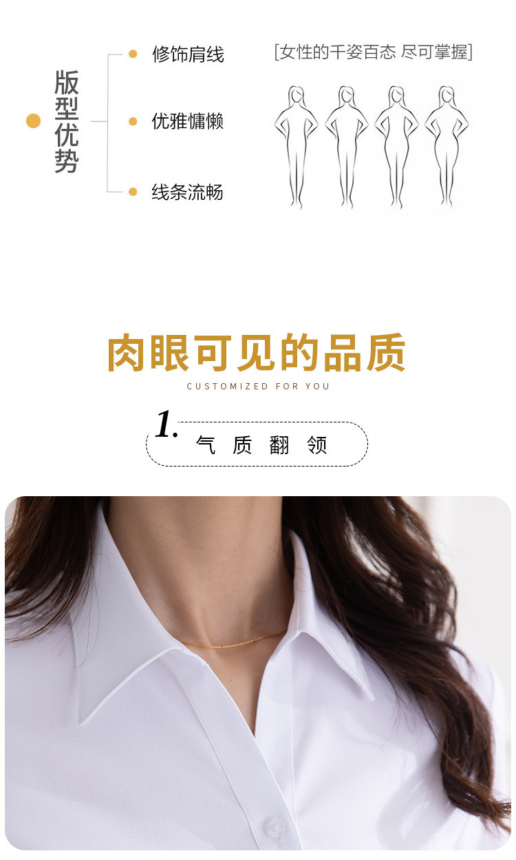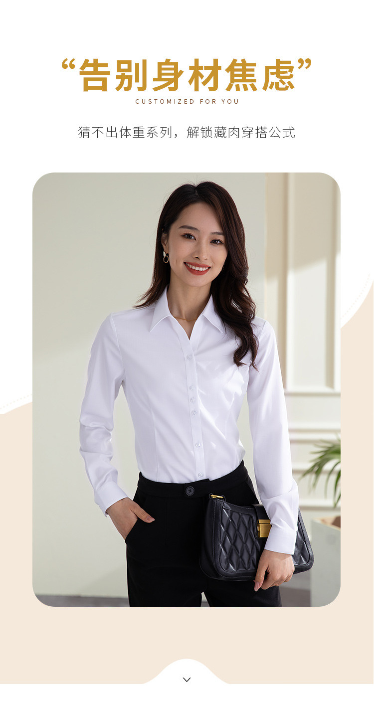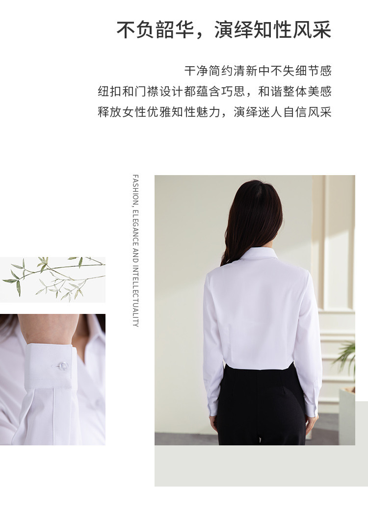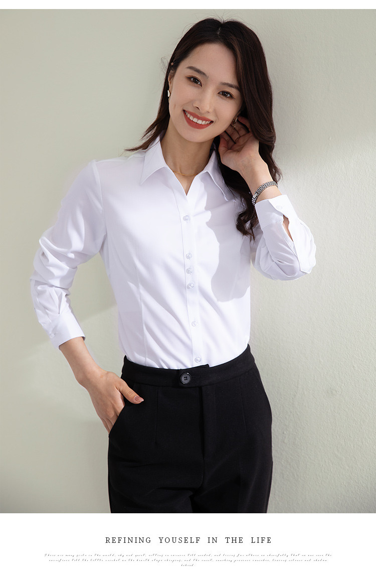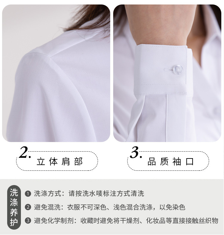 【防水防油防污】罗蒙女士长袖V领衬衫纯色舒适抗皱易清洗商务通勤衬衣女