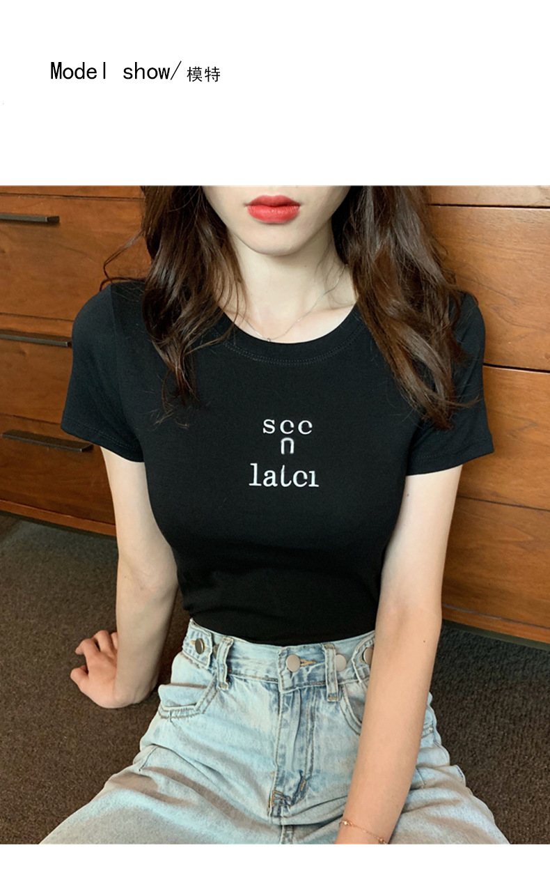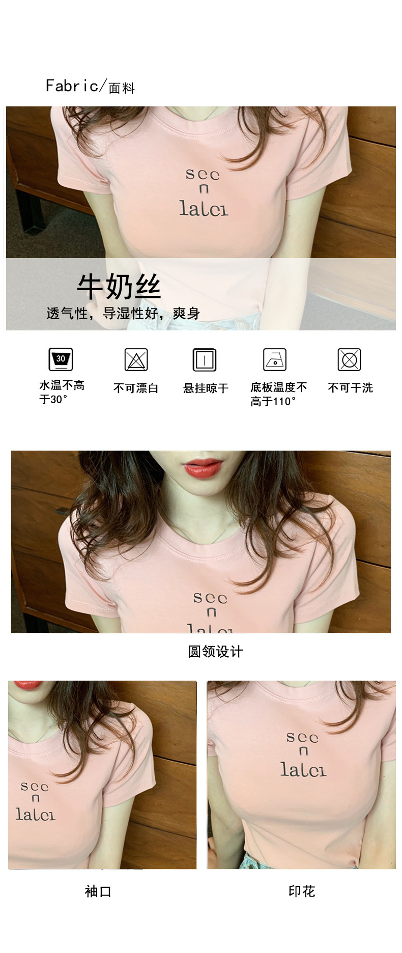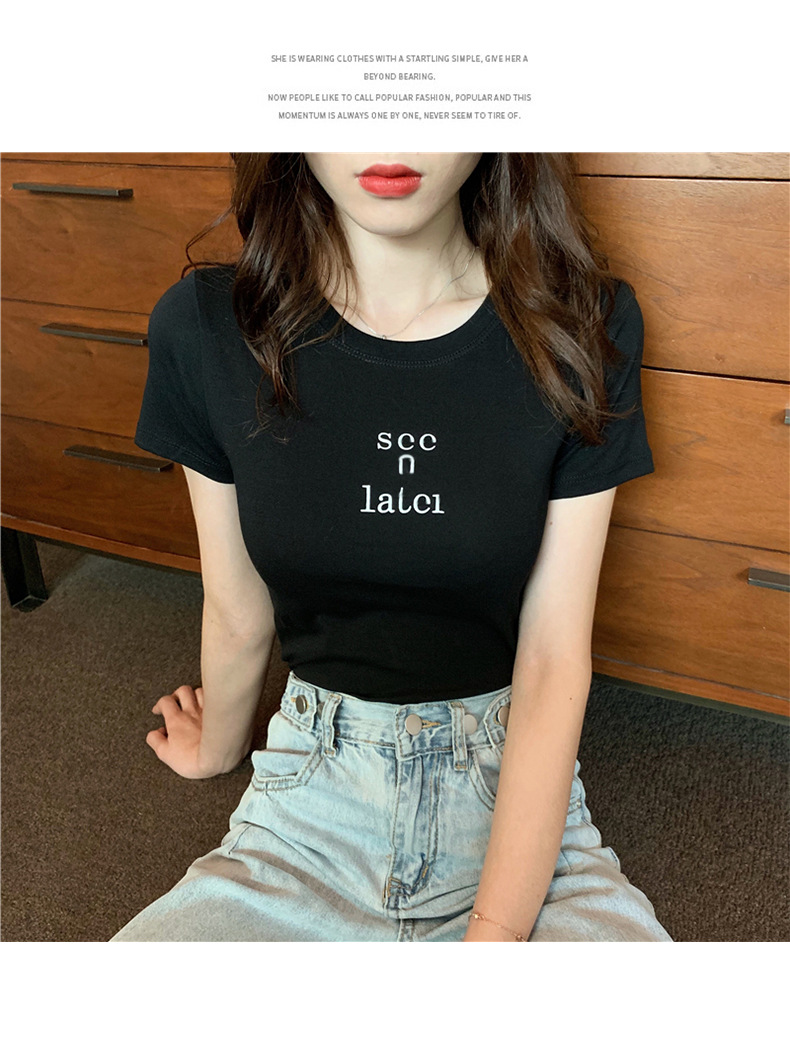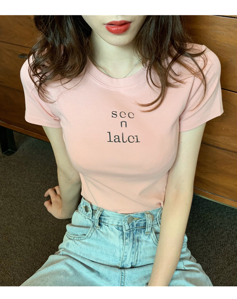 【简约字母印花T恤】T恤女ins潮夏季韩版BF修身显瘦女士圆领短袖上衣