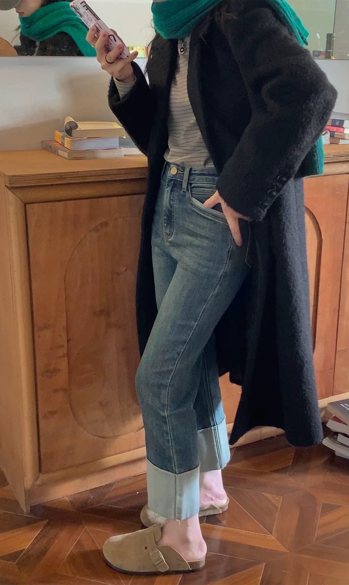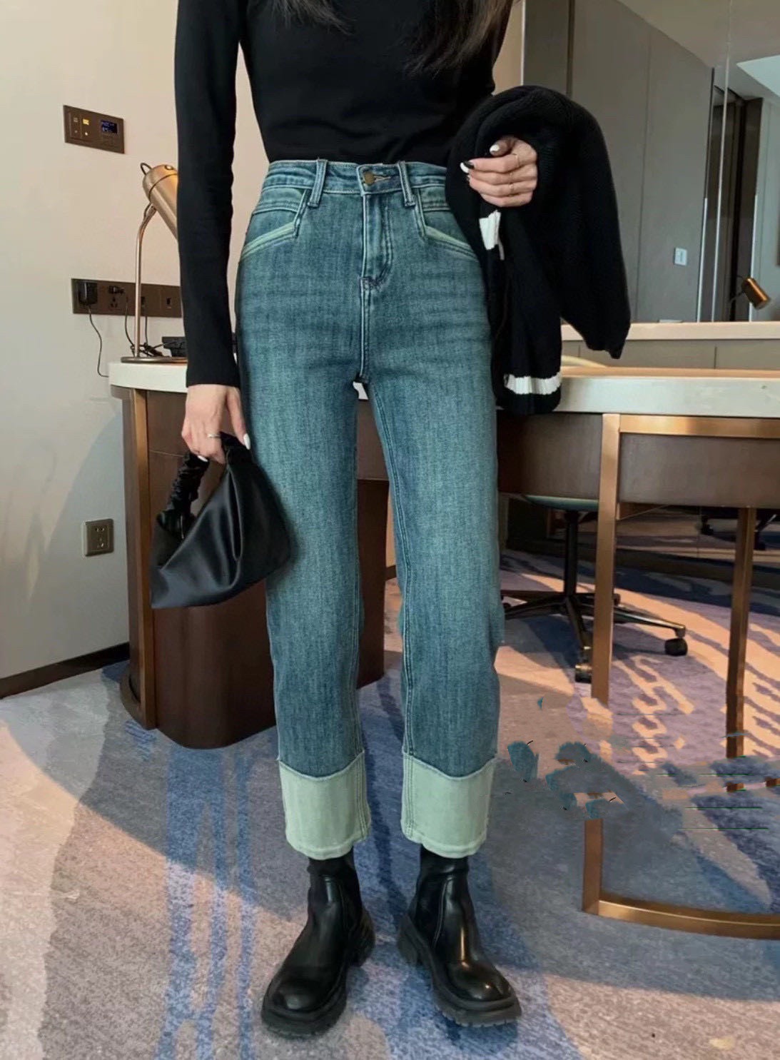 <曾小咸推荐> 高腰直筒显瘦显高 加绒5度可穿 八分九分长裤牛仔裤王