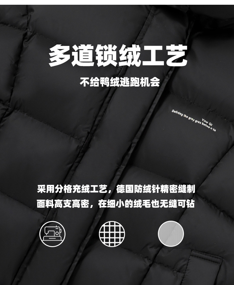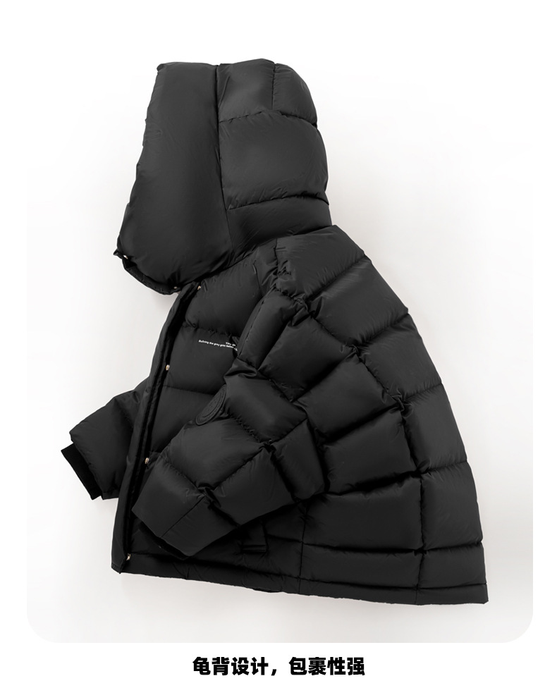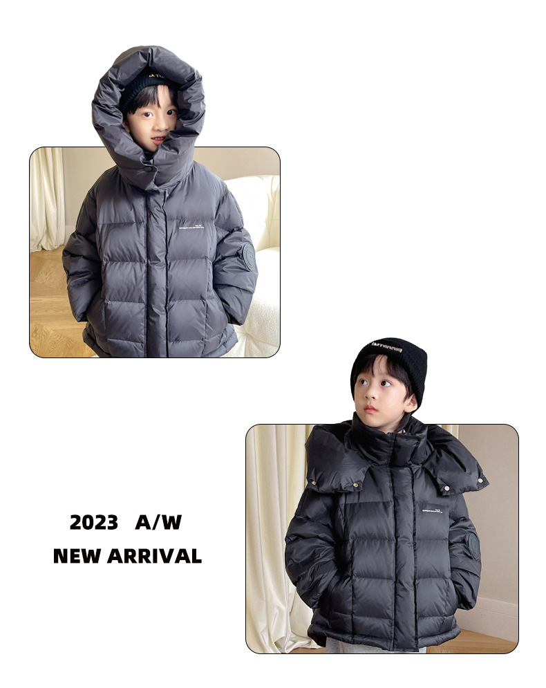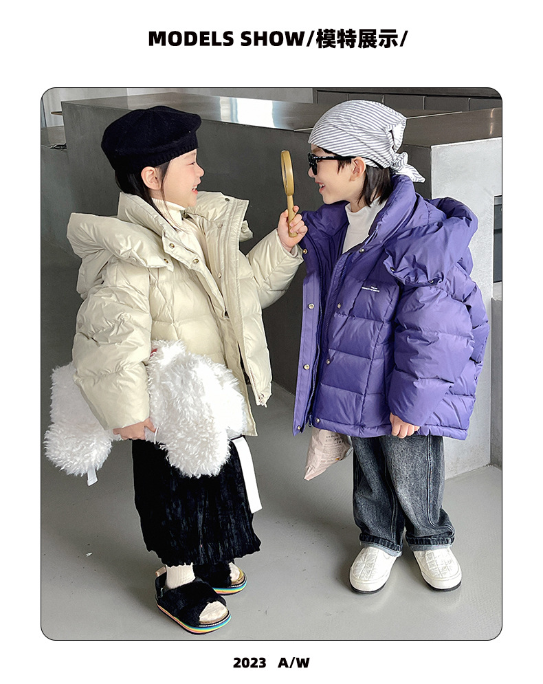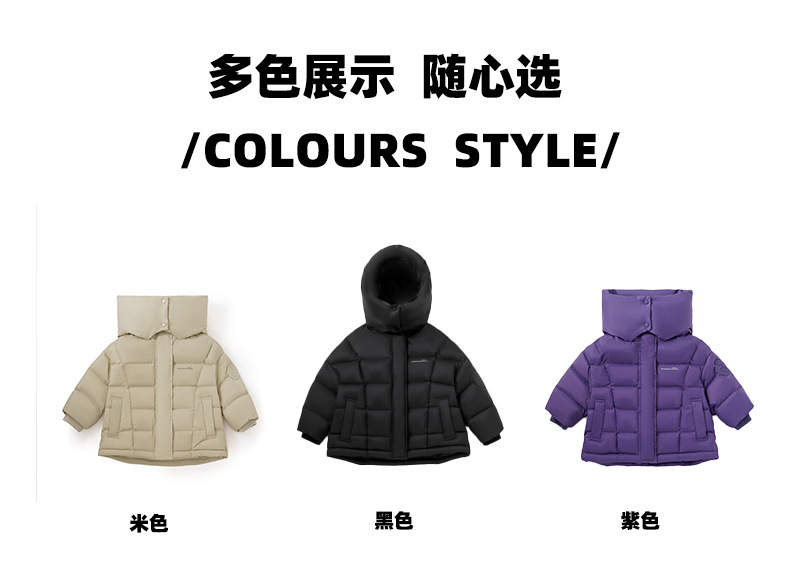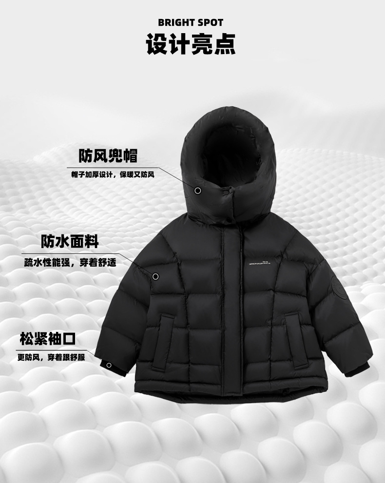 「三色可选!长款羽绒服」呦奇2023冬季新款韩版个性龟背设计时尚印花连帽儿童羽绒服童装