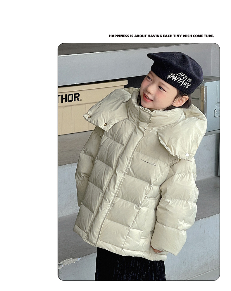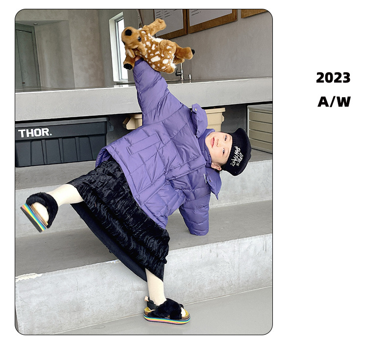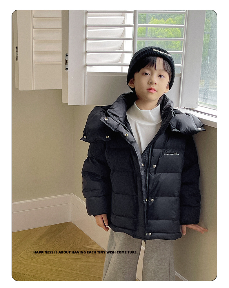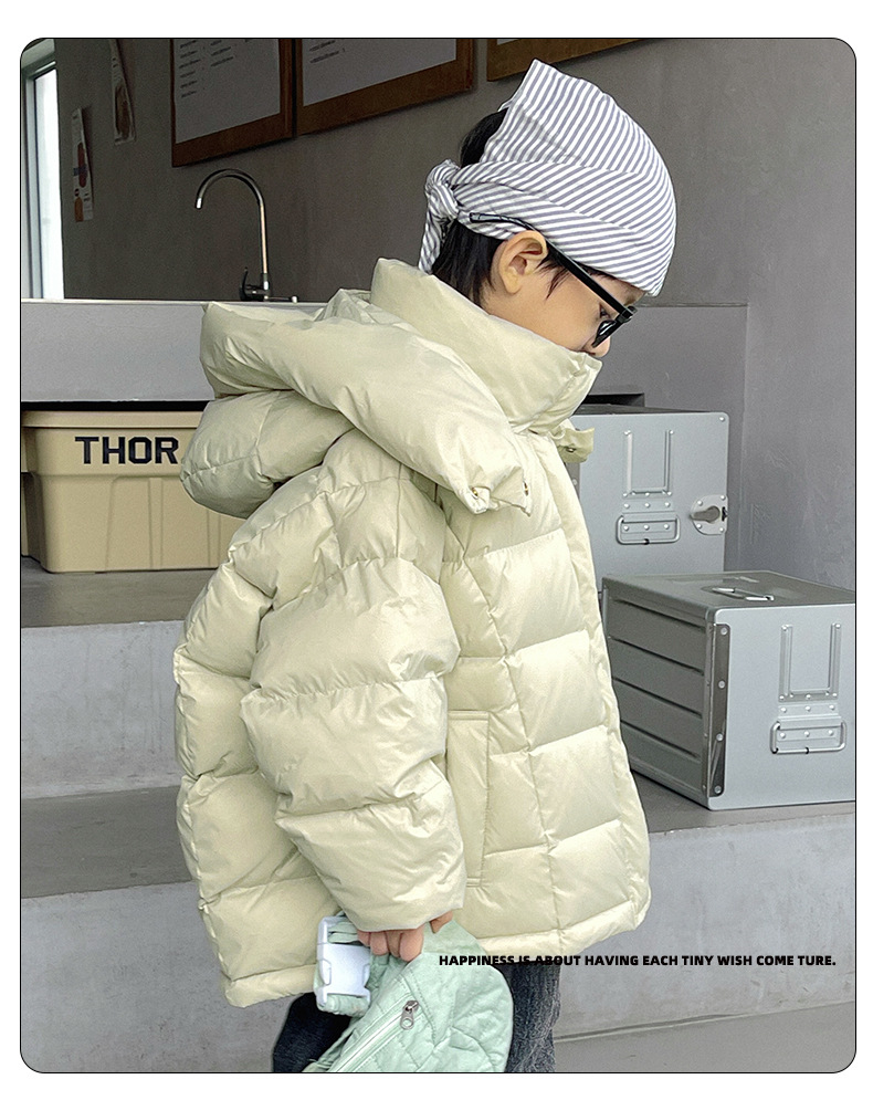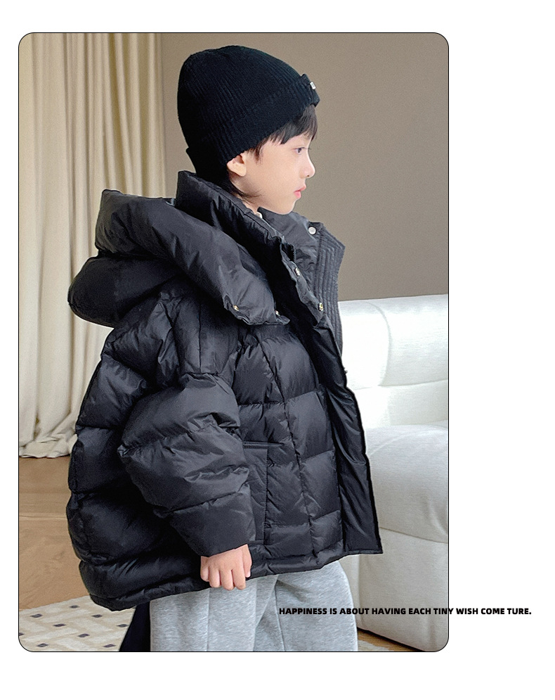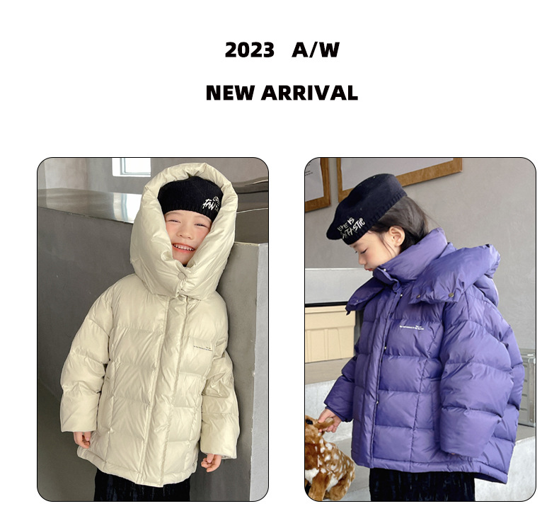 「三色可选!长款羽绒服」呦奇2023冬季新款韩版个性龟背设计时尚印花连帽儿童羽绒服童装