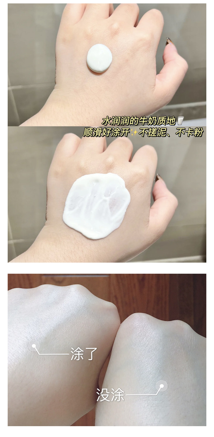 耐水性也超强, 通过了80分钟的防水测试,遇水防护力会更强。也就是说,如果你出汗或者去海边,紫外线仿晒膜会更均匀更强效。
