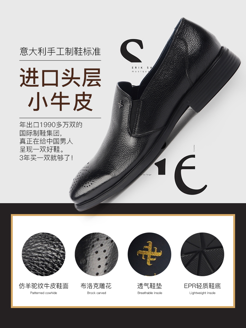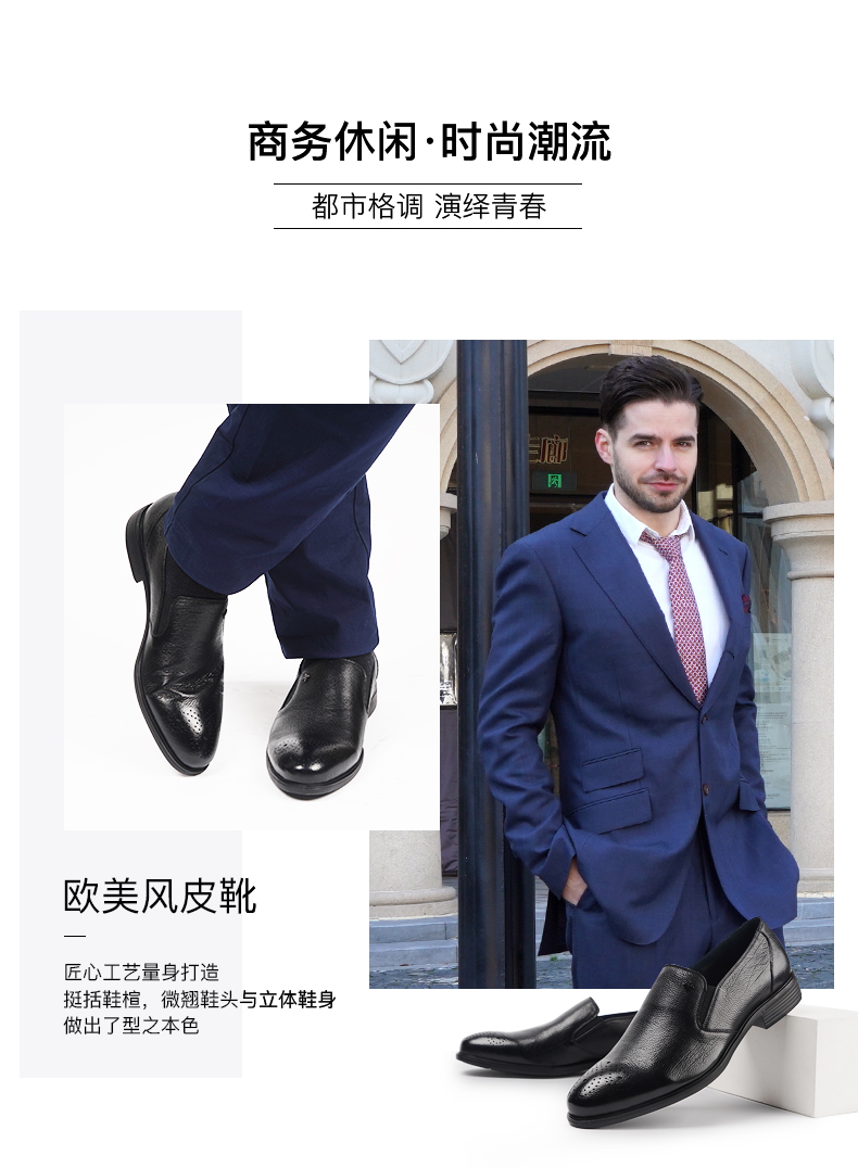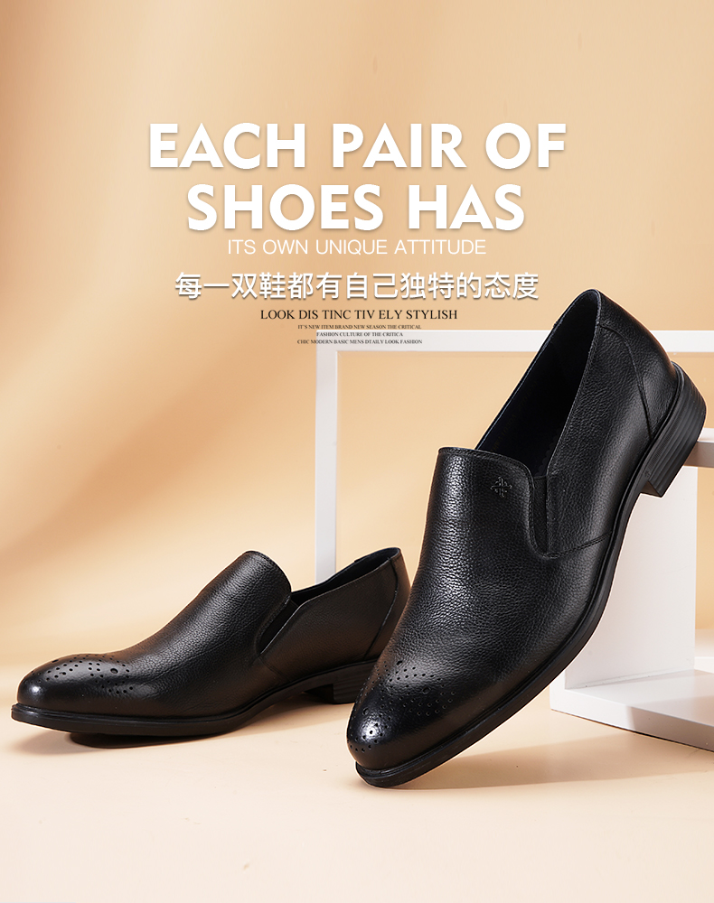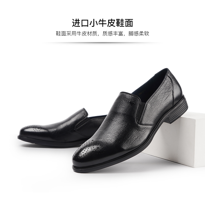 迪迈奇新款商务一脚蹬头层牛皮透气时尚百搭软底舒适男士皮鞋