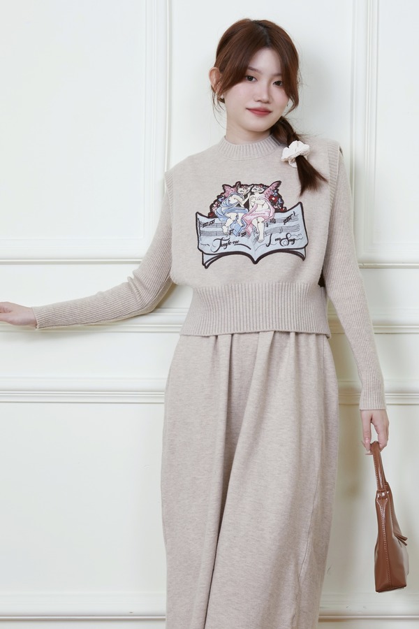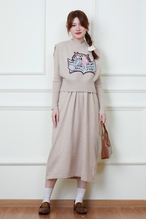 Stay2Weeks 猫咪刺绣马甲连衣裙套装 19099