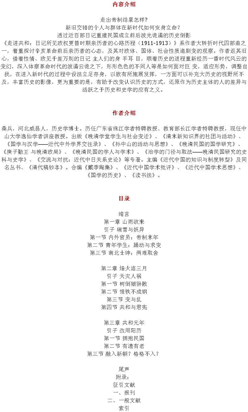 走进共和 日记所见政权更替时期亲历者的心路历程(1911-1913) 秦兵 著 9787303194742 北京师范大学出版社