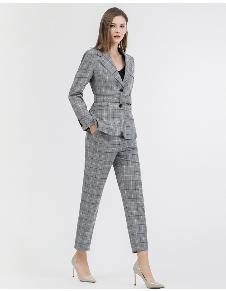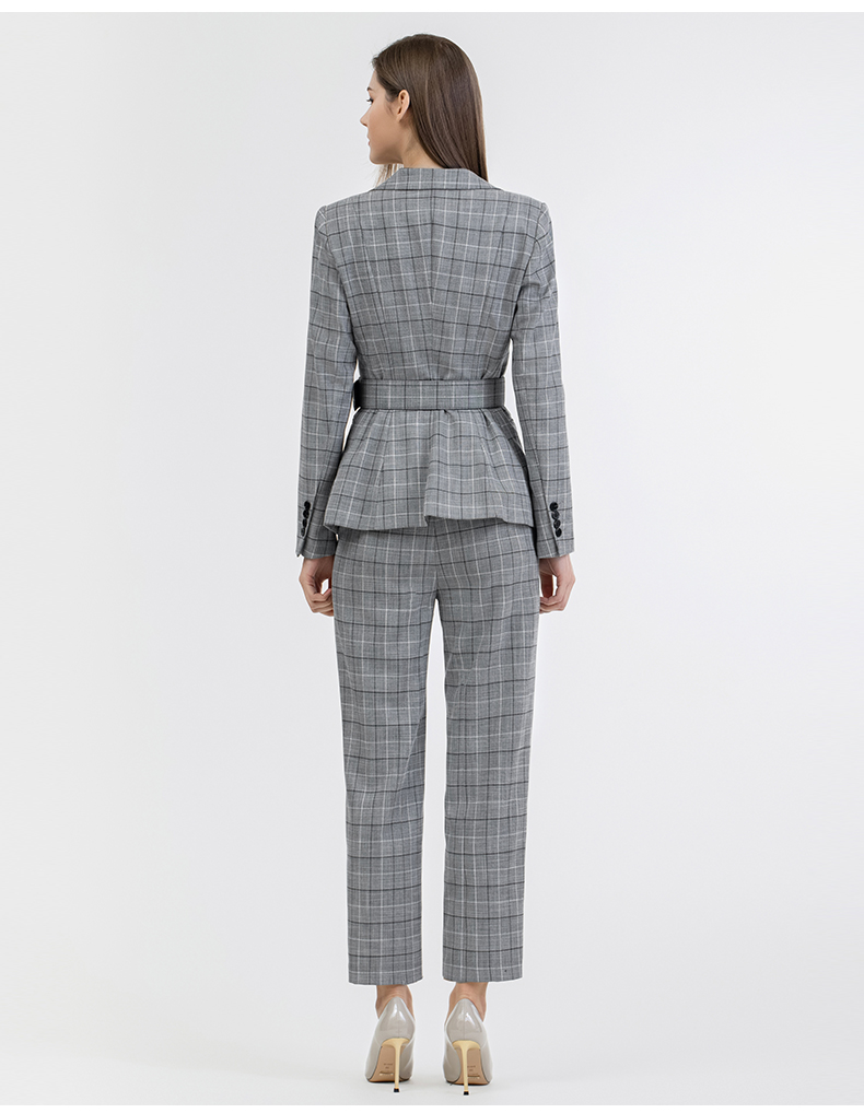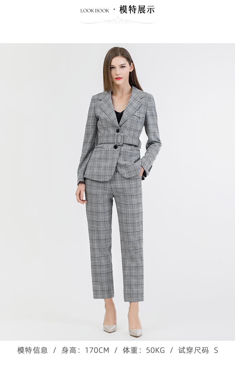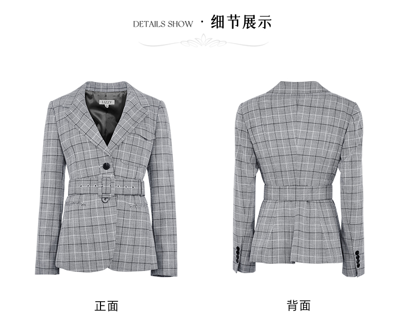 LIZZY 英伦风格纹西装裙型衣摆外套+裤子套装(配腰带)7367
