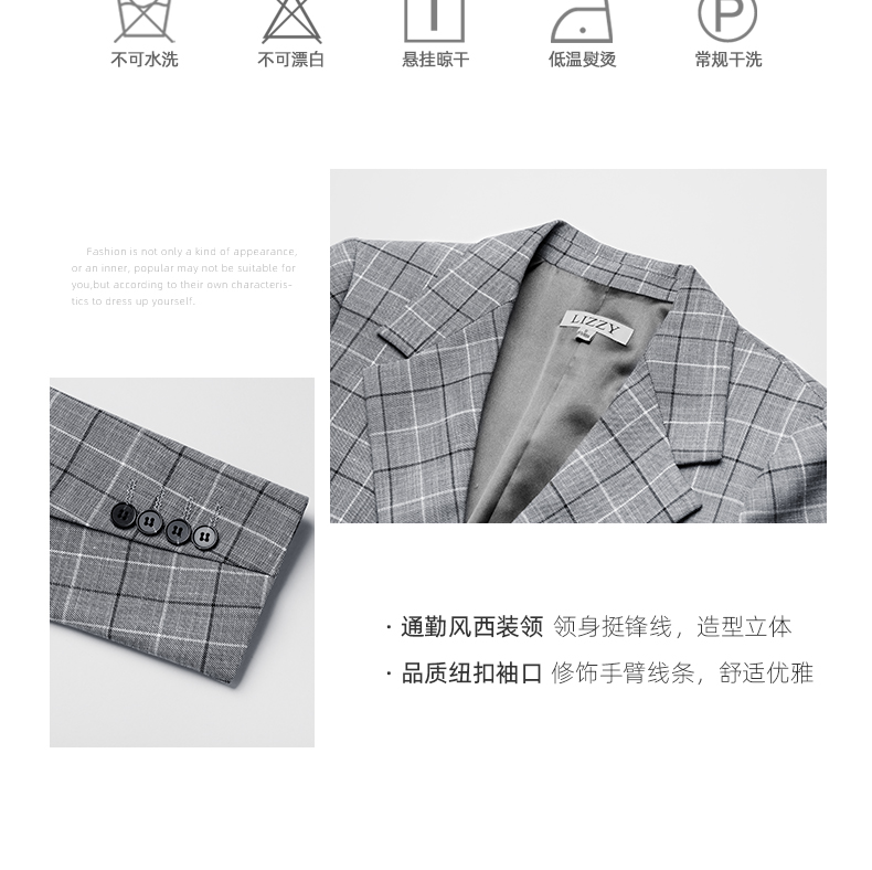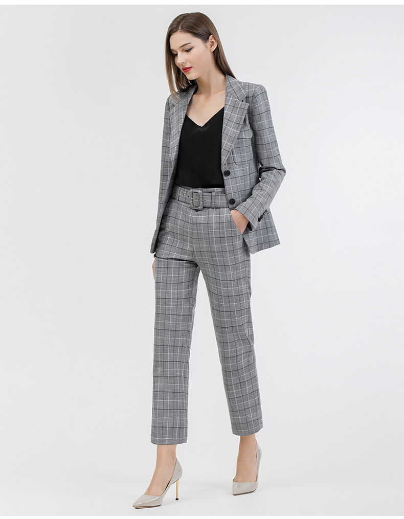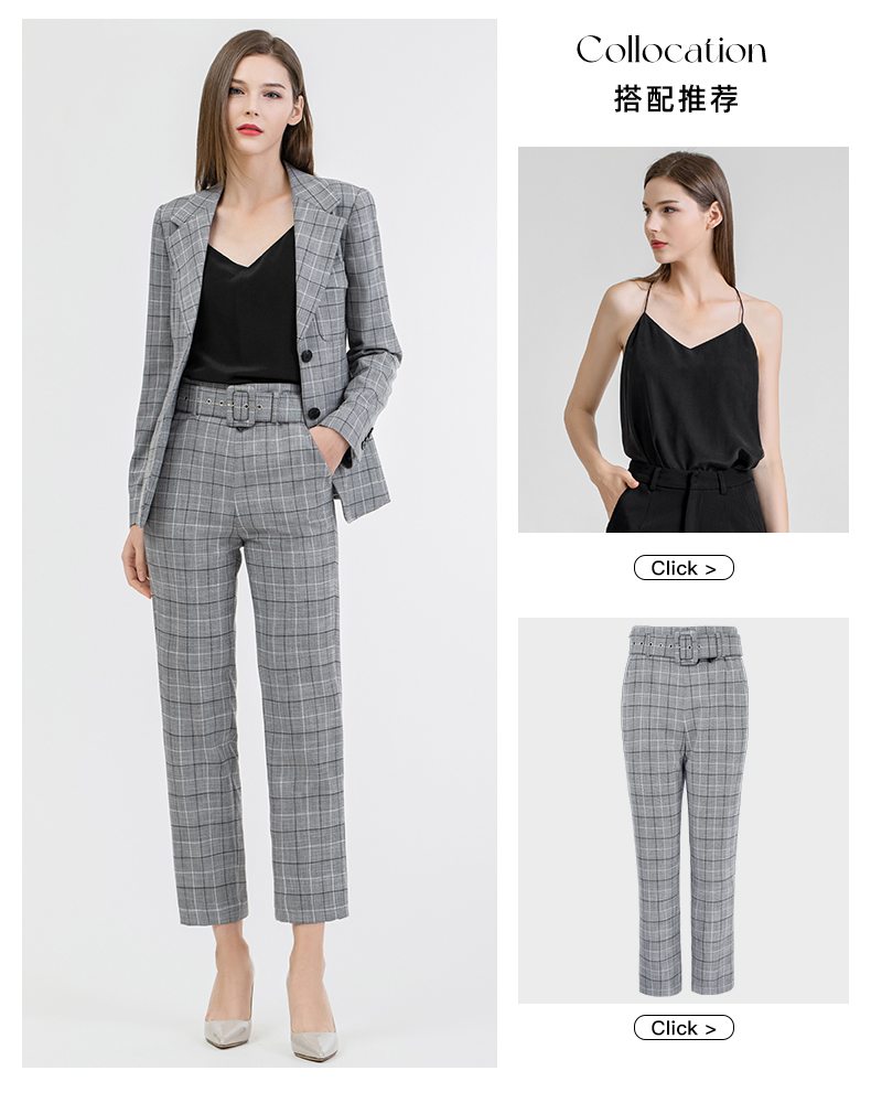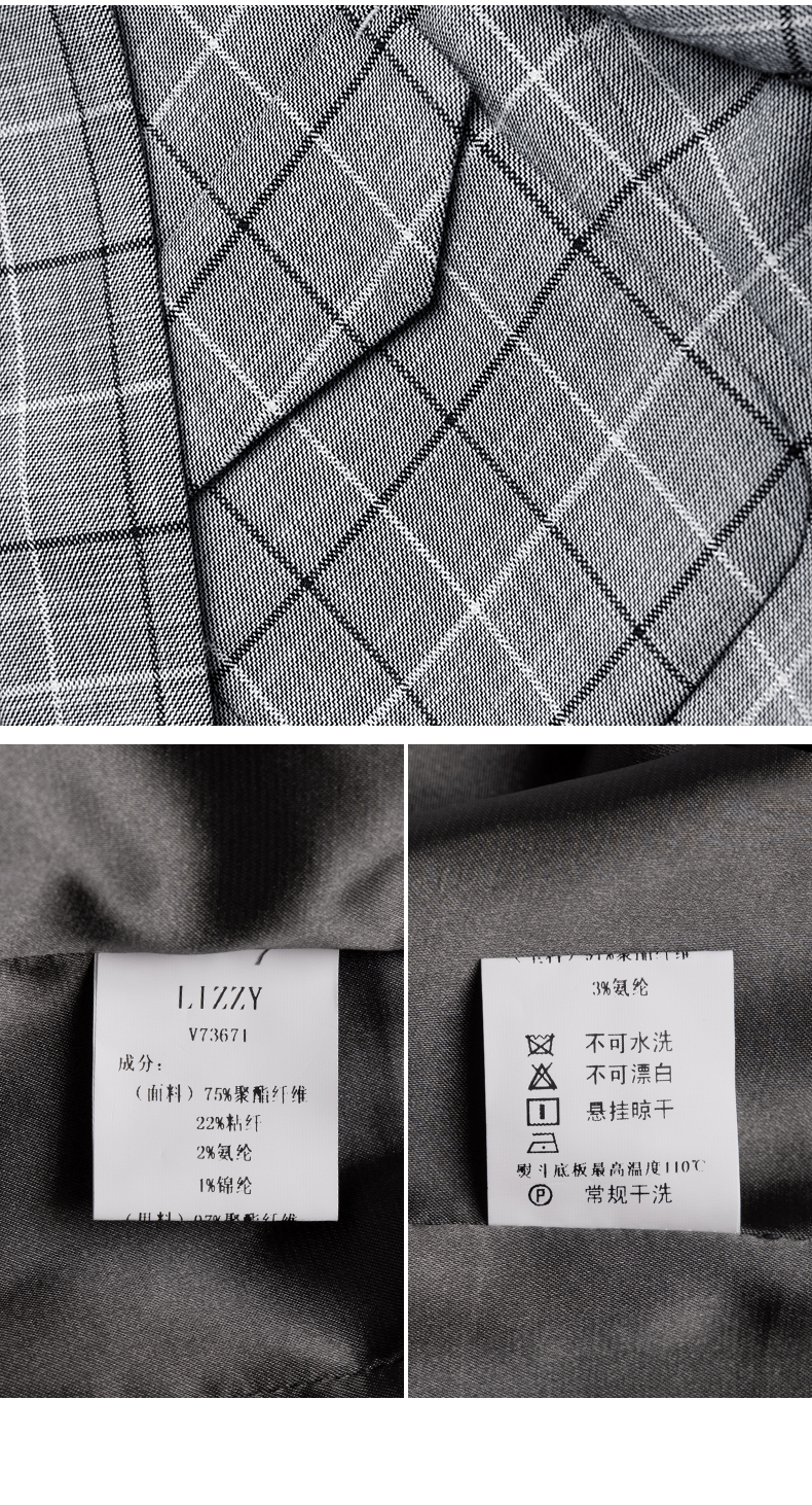 LIZZY 英伦风格纹西装裙型衣摆外套+裤子套装(配腰带)7367