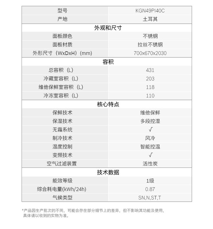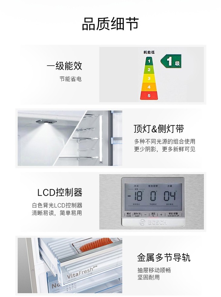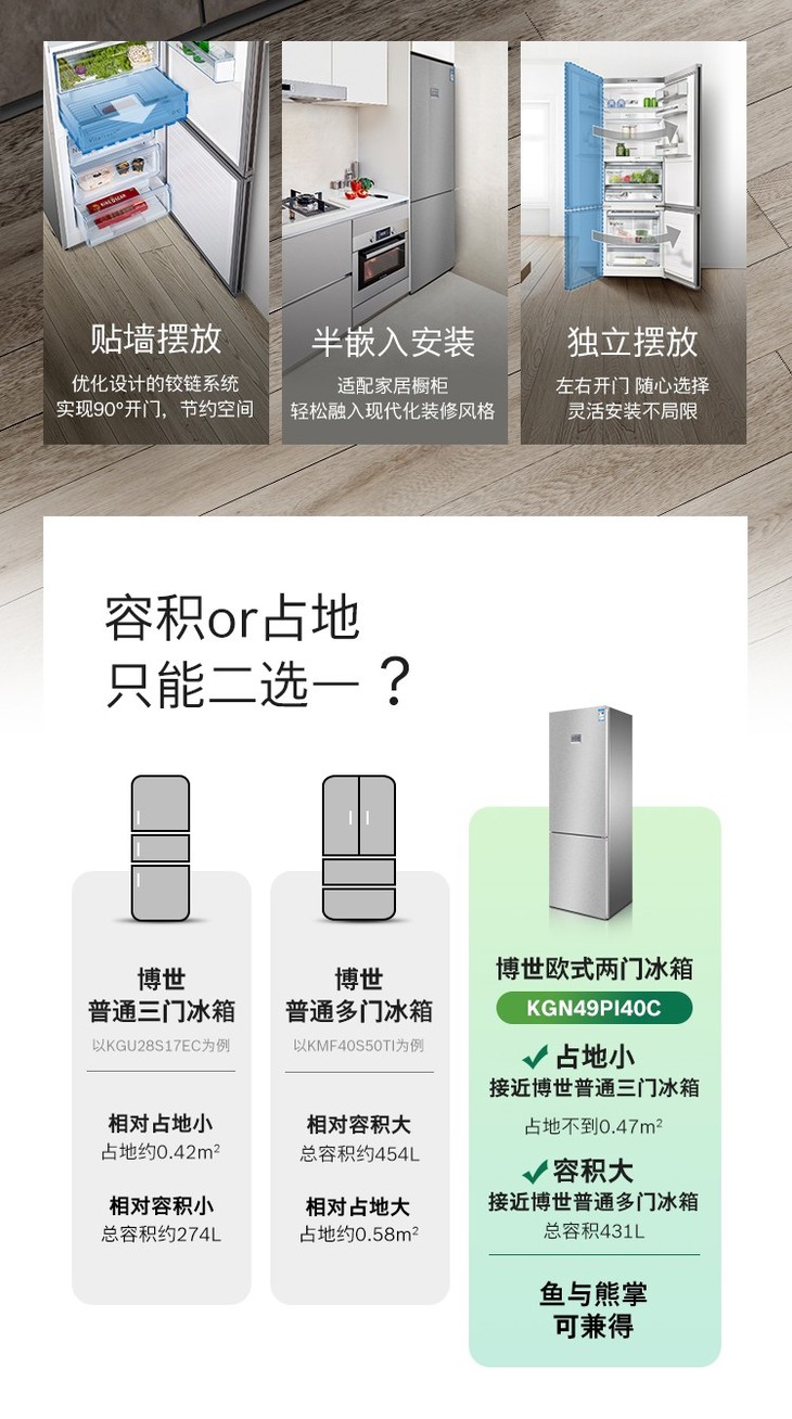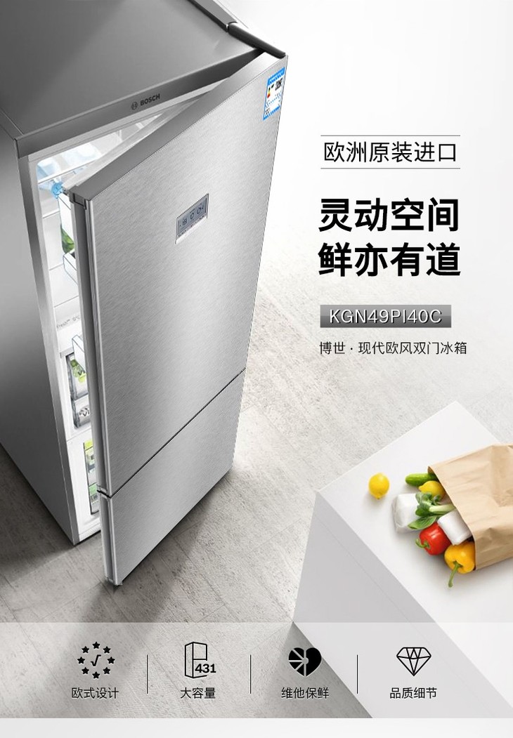 博 世 431升欧洲原装进口两门大容量双门冰箱零度维他保鲜一级能效KGN49PI40C