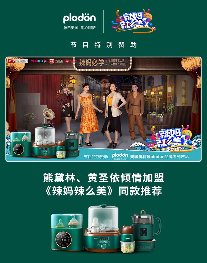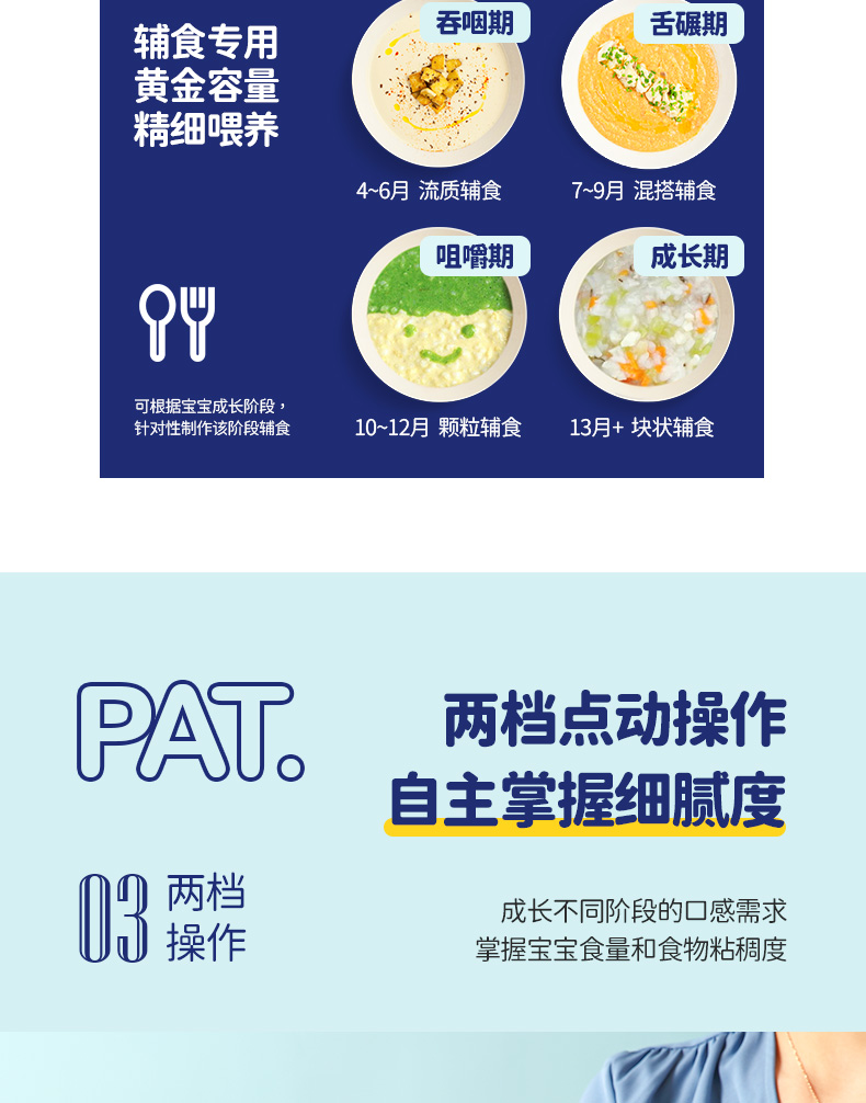 浦利顿花纹熊熊辅食机全钢钢盖多档料理机PLD-FS-530