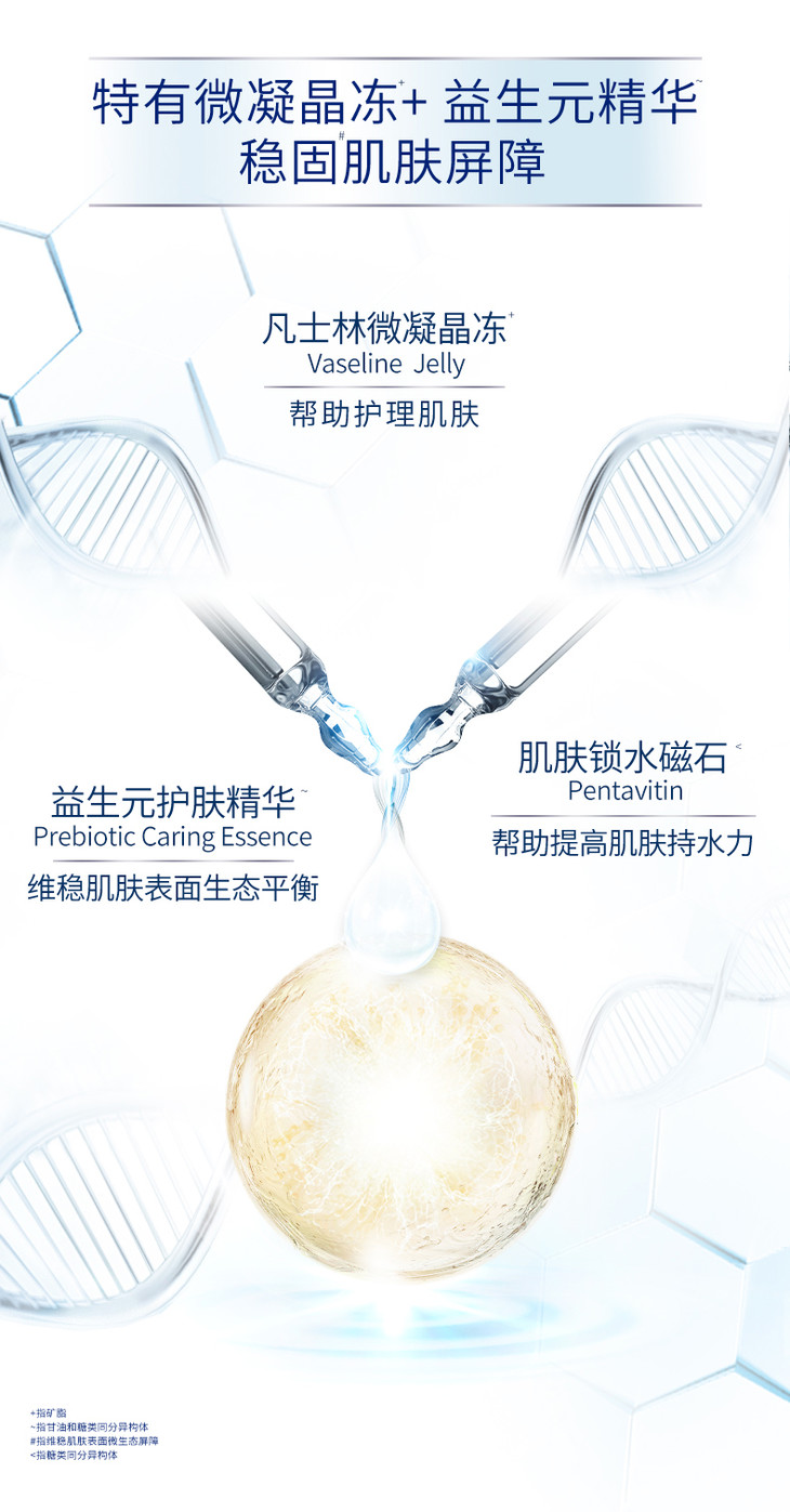 整个系列都加入了凡士林家的炒鸡经典的修护成分《晶冻》
