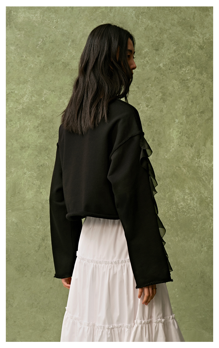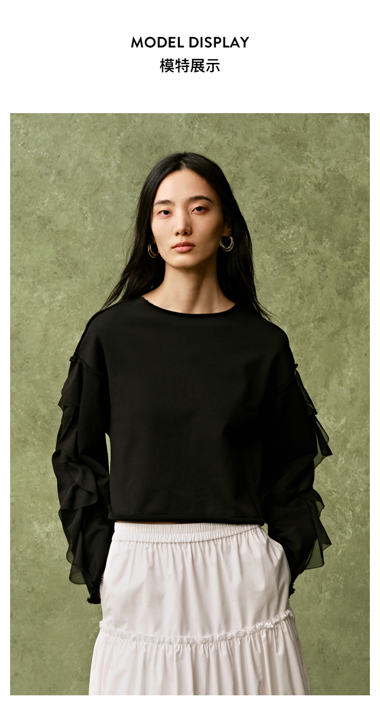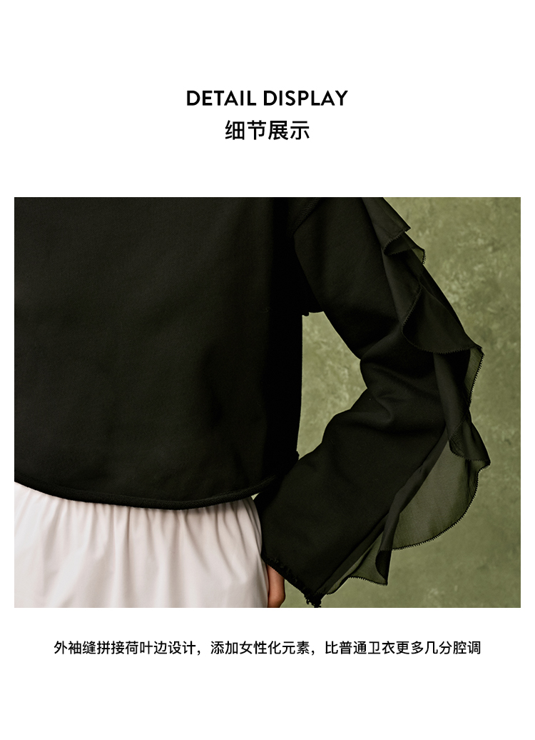 【JASON WU】春季新款荷叶边长袖新中式百搭休闲通勤上衣卫衣女