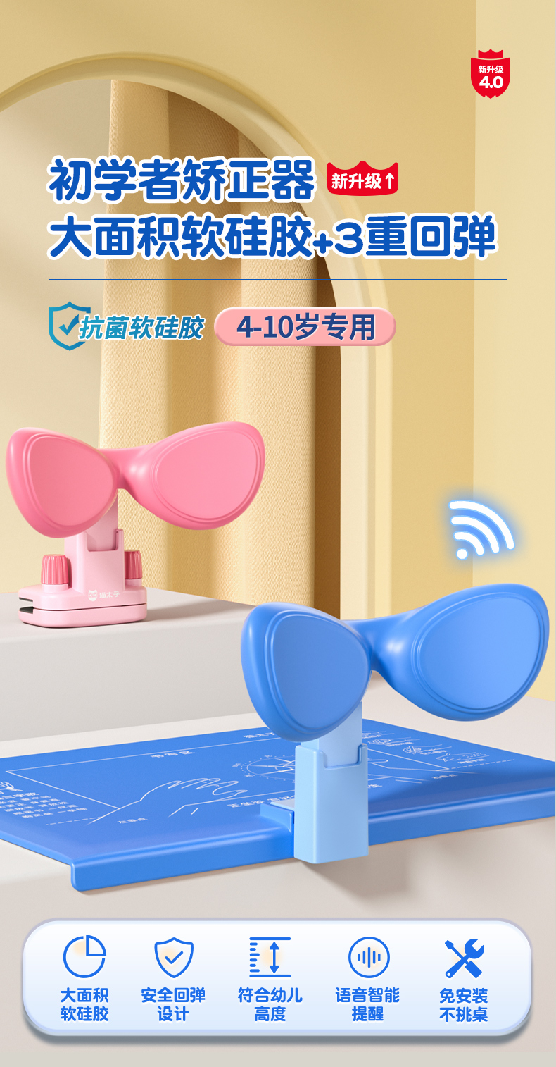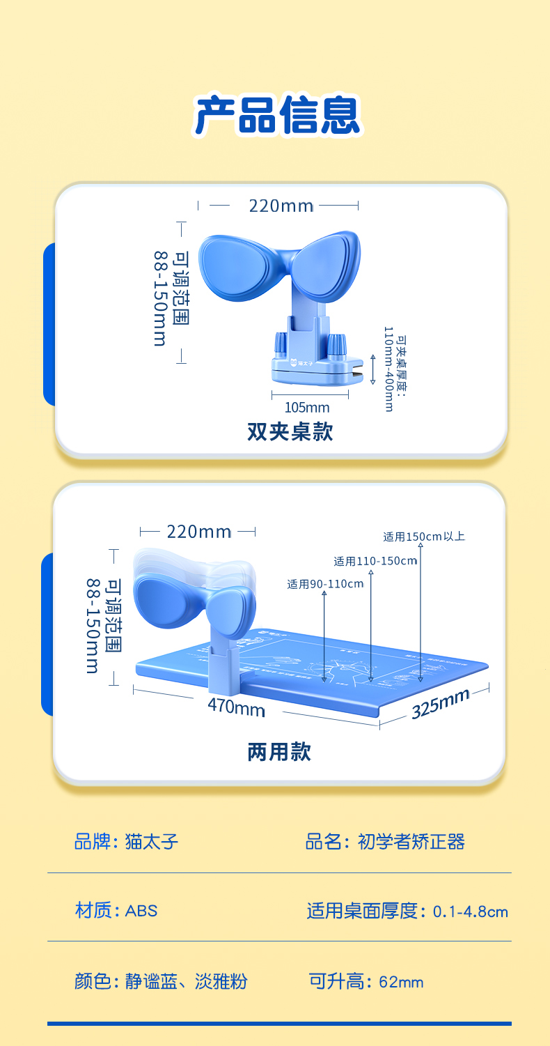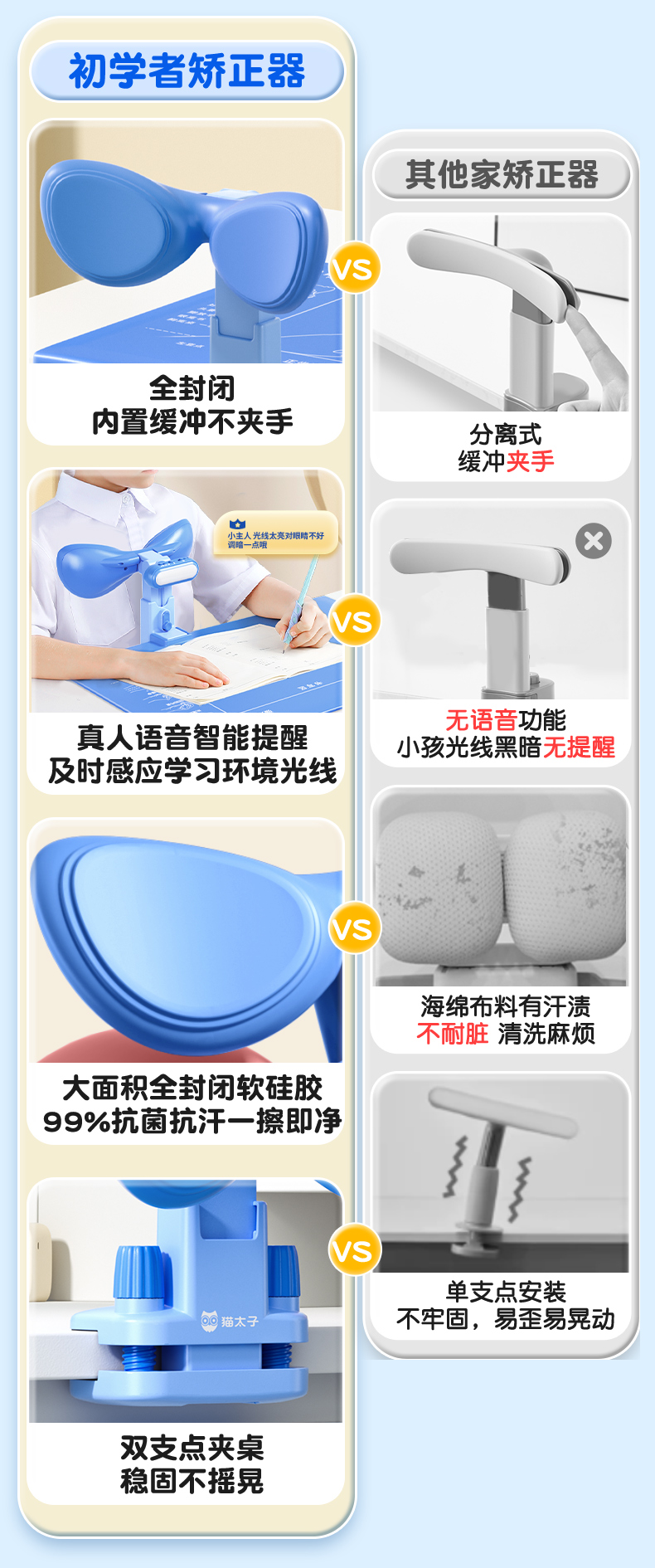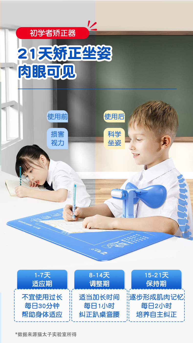 猫太子坐姿矫正器小学生儿童专用写作业写字纠正坐姿势调整器防驼背低头防近视眼支架端正书写学习书桌面款