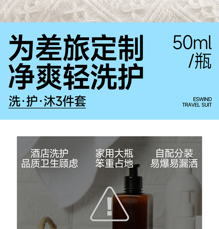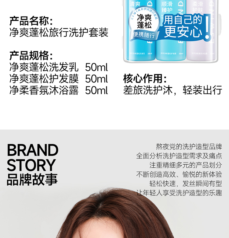【洗护沐三件套 为差旅定制】伊风净爽蓬松旅行套装