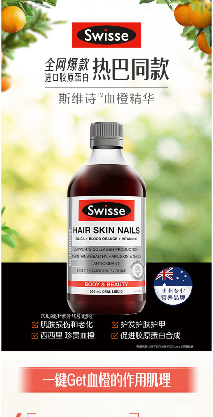 Swisse瑞思胶原蛋白血橙饮料500ml