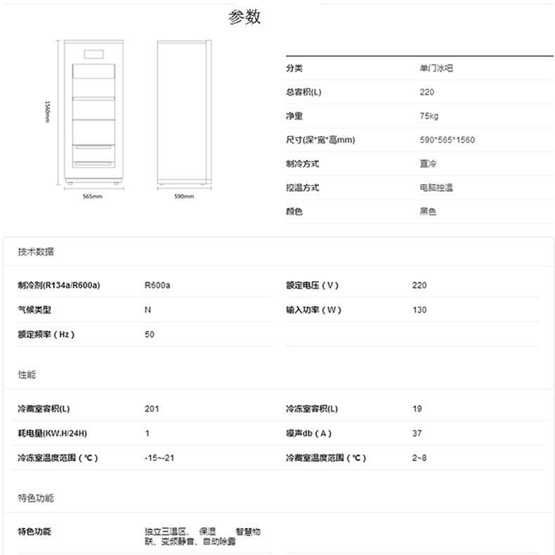 卡萨帝冰吧恒温红酒柜 商用家用带制冰室 红酒冰吧保鲜柜冷柜LC-220JE