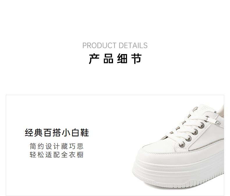 伊伴秋季经典百搭小白鞋厚底增高女鞋B25426510